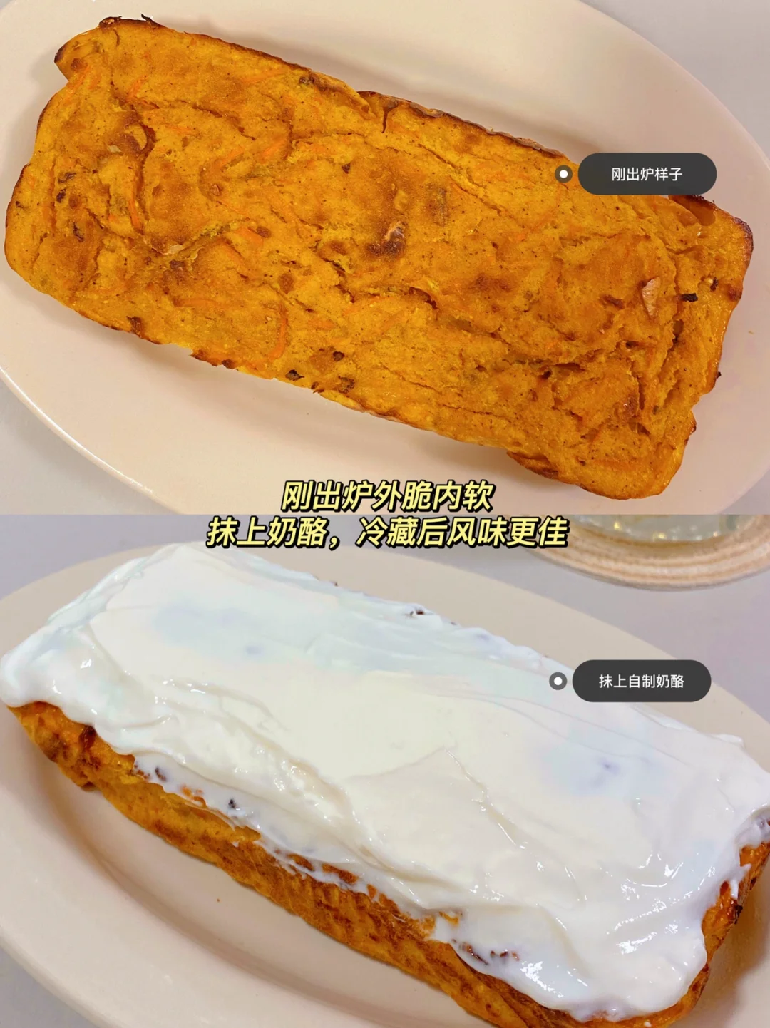 👩🍳宅家刷英剧,发现一款下午茶甜点-胡萝卜奶酪蛋糕,这不巧了嘛,刚好有胡萝卜‼️参照外网的方子,减半了量,改良成1-2人份的无油无面粉版‼️