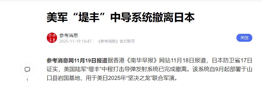 就在中日双方对峙进入白热化,随时可能开战的时候,美国突然悄无声息的把部署在日本的中程导弹系统给撤走了! 麻烦看官老爷们右上角点击一下“关注”,既方便您进行讨论和分享,又能给您带来更多优质的内容,感谢您的支持! 就在中日双方在东海对峙进入白热化、仿佛只差一点火星就能点燃战火的敏感时刻,美国却突然悄无声息地,把此前部署在日本的中程导弹系统撤走了——这一动作,看似轻描淡写,却像是一块巨石砸进亚洲的地缘政治池塘,激起层层波澜。 事情的变化并不是从撤导弹才开始的。过去几个月,中日在东海的摩擦不断升级:海警船对峙时间更长、距离更近,双方战机在空中的接触越来越频繁,日方媒体更是煽风点火,把局势渲染成“战争一触即发”。 日本政府对外摆出一副强硬姿态,不仅公布所谓“应对预案”,还不断加码军事部署,把自己包装成“准备和中国硬刚的受害者”。但在真实战略层面,日本从头到尾都清楚:一旦真打,它根本撑不住。 最紧要的问题是,这场对峙关键不在中日,而在于美国。因为日本敢在台海、东海频频挑衅,就是因为背后有美国撑腰。 而美国这套中程导弹系统,就是象征意义最大的“安全承诺”之一。按理说,在局势紧绷的时候,美军更应该向盟友展示“我不会离开”,但它偏偏选择了撤离——而且还不是公开宣布,而是静悄悄地撤。 这就很能说明问题:美国不是不知道局势在升温,它是不想真的卷进去。 对美国来说,日本一直都是工具,是在亚洲围堵中国的前线按钮。但工具归工具,美国绝不会因为日本的冲动,把自己拖进一场对它完全不划算的冲突。美军从日本撤走中程导弹,很可能是精密评估之后的决定:一旦中国和日本冲突升级,美国是否有能力第一时间顶上?是否愿意?如果不愿意,那就先把最敏感的装备撤走,以免擦枪走火让自己站到战场中心。 从美国的角度讲,这也是一种“切割”。它既不想让日本误判,以为“美国一定会替日本撑腰到底”,又想告诉中国:美方不希望局势失控,不想让亚洲变成乌克兰第二个战场。美国撤导弹,就是向外释放这种“我不想陪你们玩大的”的讯号。 而对日本来说,这招可以说是当头一棒。日本这些年不断试图把自己推到地区矛盾的中心,幻想用紧张局势换来美国的更深度介入,甚至想借美军撑腰完成某些政治操作,比如修宪、扩军、突破战后限制。但这次美军的撤离,却等于是在刺破日本长期以来的幻想:美国永远不会为日本的冒失去付出代价,尤其是在大国对抗这种等级的局面里。 日本当然知道撤导弹的含义,但它却不敢公开表达不满。因为美日同盟的核心,就是美国“说什么是什么、日本只负责执行”。日本哪怕心里再不安,也不敢挑战这层关系,只能继续硬撑着对外展示所谓“镇定”,继续在外交辞令里强调“美日稳固”,但内部焦虑已经写满脸。 而对于中国来说,美国撤走导弹其实是一种现实层面的战略缓和。它不一定代表美国立场发生改变,但至少说明美方不愿让局势滑向失控。对中国而言,这不是退让,而是正面说明自身在地区的战略压力已经让美方不得不重新审视代价。中国在东海的态度非常明确:不挑事,但绝不退缩。有实力、有自信、有底牌,自然能逼出对方的真实态度。 更关键的是,亚洲局势从来不是靠说,而是靠实力在维持平衡。美国撤导弹,不是突然心软,而是认识到在这片区域,力量对比已经发生根本性变化:靠武力压制中国的时代结束了;继续强化军事对抗,只会把美国拖进一场不确定的大泥坑。 换句话说,美国这次撤走的不是一套导弹系统,而是某种信心。 而日本也正因为看到这一点,焦虑才会不断累积。它过去一直依靠美国维稳,但现在它意识到,美国未必愿意为了日本和中国打仗;日本越是主动挑衅,越可能被美国当成可抛弃的棋子。亚洲真正的秩序未来必然由中国决定,而不是由远在太平洋另一端的美国“遥控管理”。 美国的撤离,也让东海的“虚火”降温了一截。中日是否会爆发冲突从来不取决于日本,而取决于美国是否愿意点头。而现在,美国不但不点头,甚至连装备都悄悄撤离,这意味着它根本不想让局势继续升级,更不想让日本误判到把自己拉下水的程度。 亚洲正在进入一个新的地缘政治阶段,旧的依靠体系已经在悄然松动。美国的动作说明,没有哪个国家能永远躲在别人的保护伞下,更不会有国家愿意替他国承担战争风险。日本要想真正稳定东海局势,靠的不是美国的导弹系统,而是自身对现实的清醒认知。