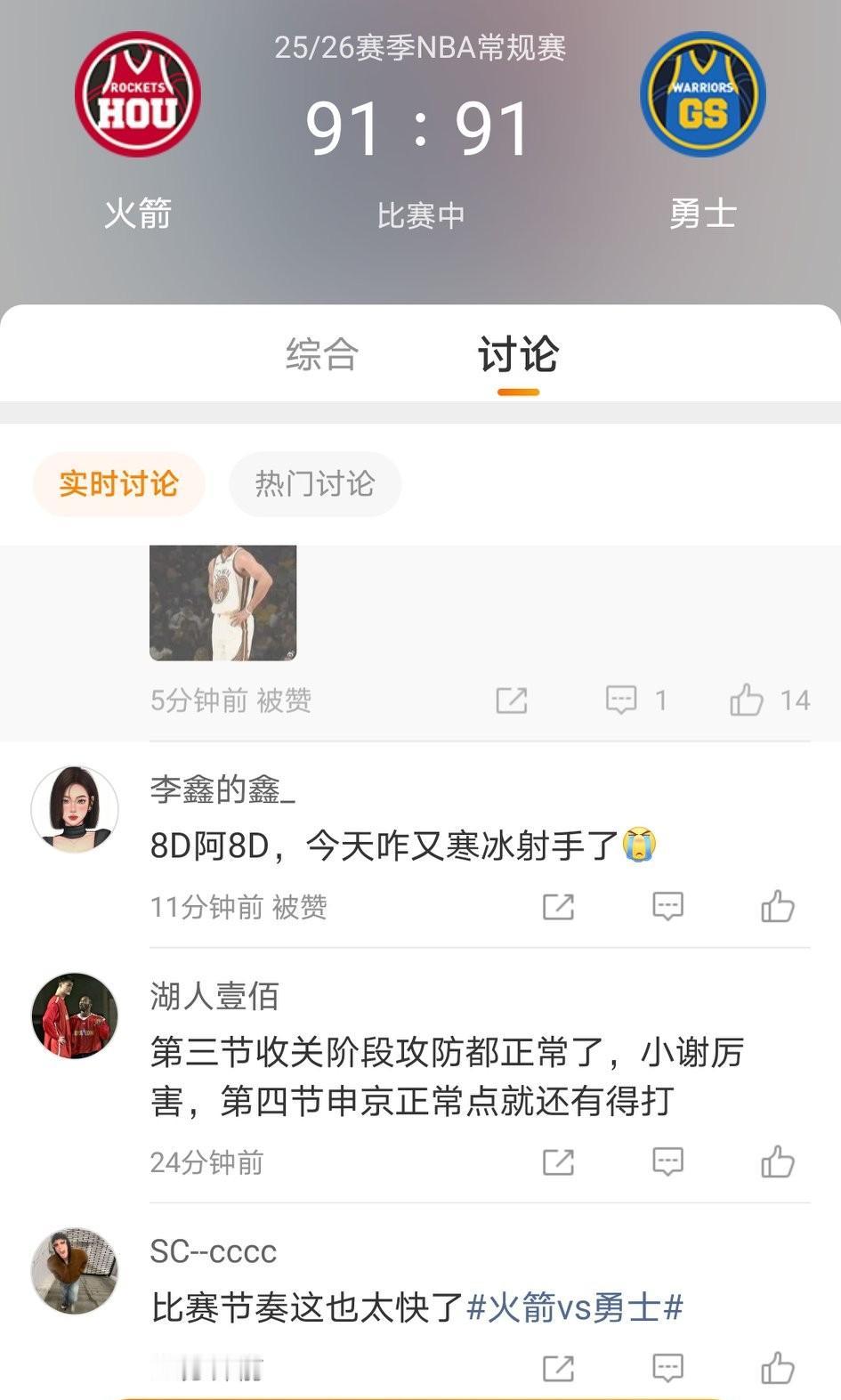库里第三节下场领先5分,库里不在现在落后8分,第四节,库里回来又追回了比分……如今91-91打平。 每次都这样,怎么玩……