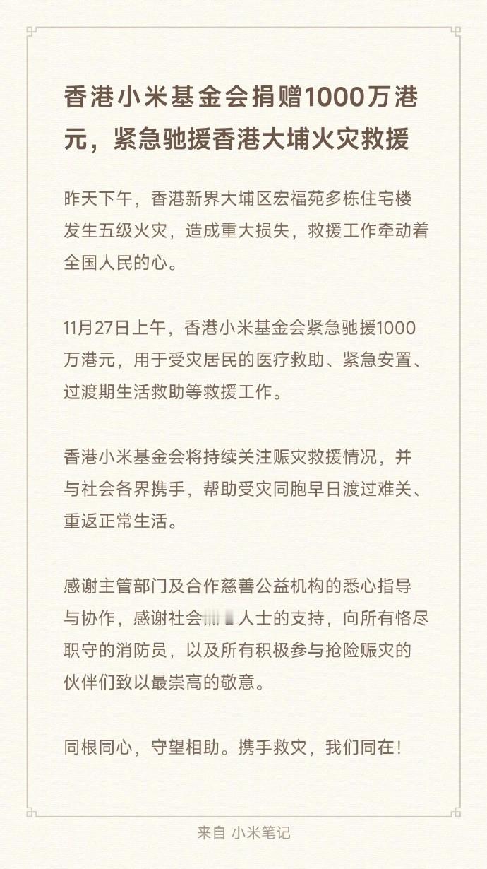 科技向善,中国大部分科技公司都做得很好。这次香港发生大火,内地科技公司、车企也同样慷慨解囊,伸出援手。小米基金会捐款 1000 万港币;小鹏捐款 500 万港币;比亚迪捐款 1000 万港币愿港岛受灾同胞早日恢复正常生活。 另外转发一个B站实景拍摄防火技巧,希望大家都学到,但用不到!烧一间房子告诉你,火灾现场的三个保命知识!