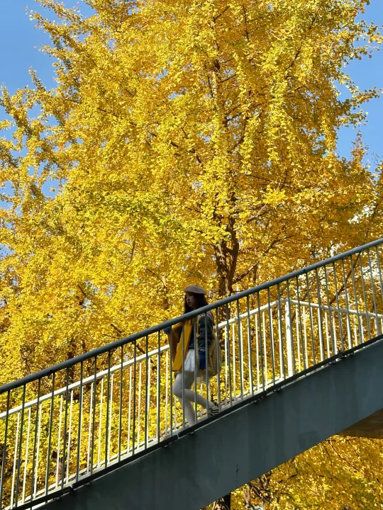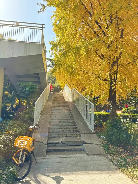 11.26拍摄的live!!地铁直达! 差不多全黄啦!!因为在天桥旁很好拍人像~ 上午十一点拍的,光线比较柔和☀️ 早点去也没啥人,很出片📷 - 📍定位:赵家条地铁站c口直行20m江大路天桥 -