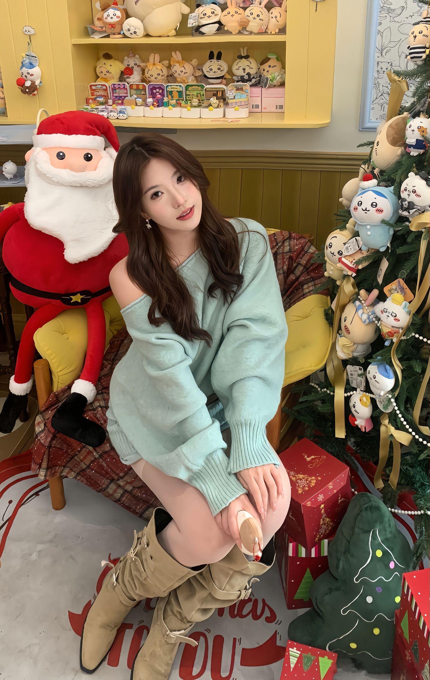 今天穿什么 露肩小毛衣,肉丝,长靴美女绘梦长廊