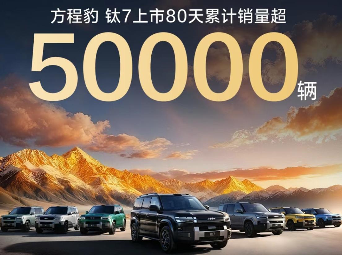 方程豹钛7的热销态势还在延续,只能说它对用户的吸引力够强。11月又卖了超过2万台。官方又发销量数据了。 方程豹汽车宣布,钛7上市80天,累计销量超过50000台。 钛7是9月9日正式上市,9月份的21天内销量达到了8128台。10月份的31天销量达到了20024台。 也就是说前52天,钛7销量为28152台。那么在11月的前27天内,钛7销量则超过了21848台。 11月接下来还剩余3天,那么预计来看,11月钛7销量保守估计也有23000台,还有很大可能突破24000台。 不知道大家觉得方程豹钛7的吸引力如何?【来自懂车帝车友圈】
