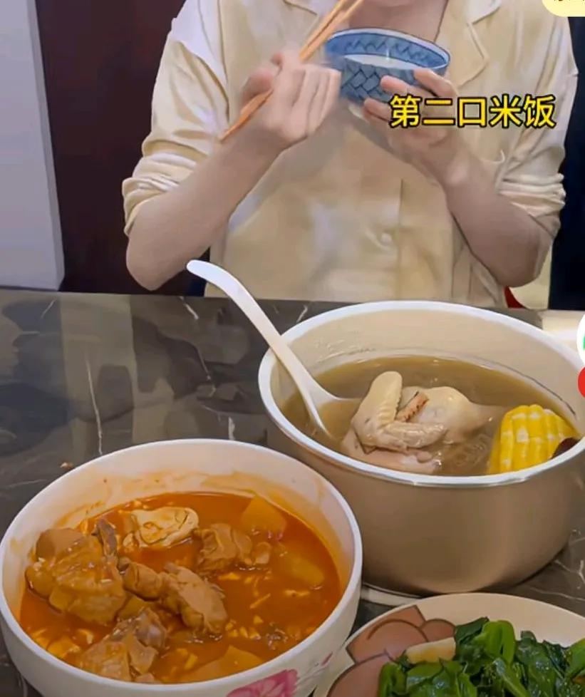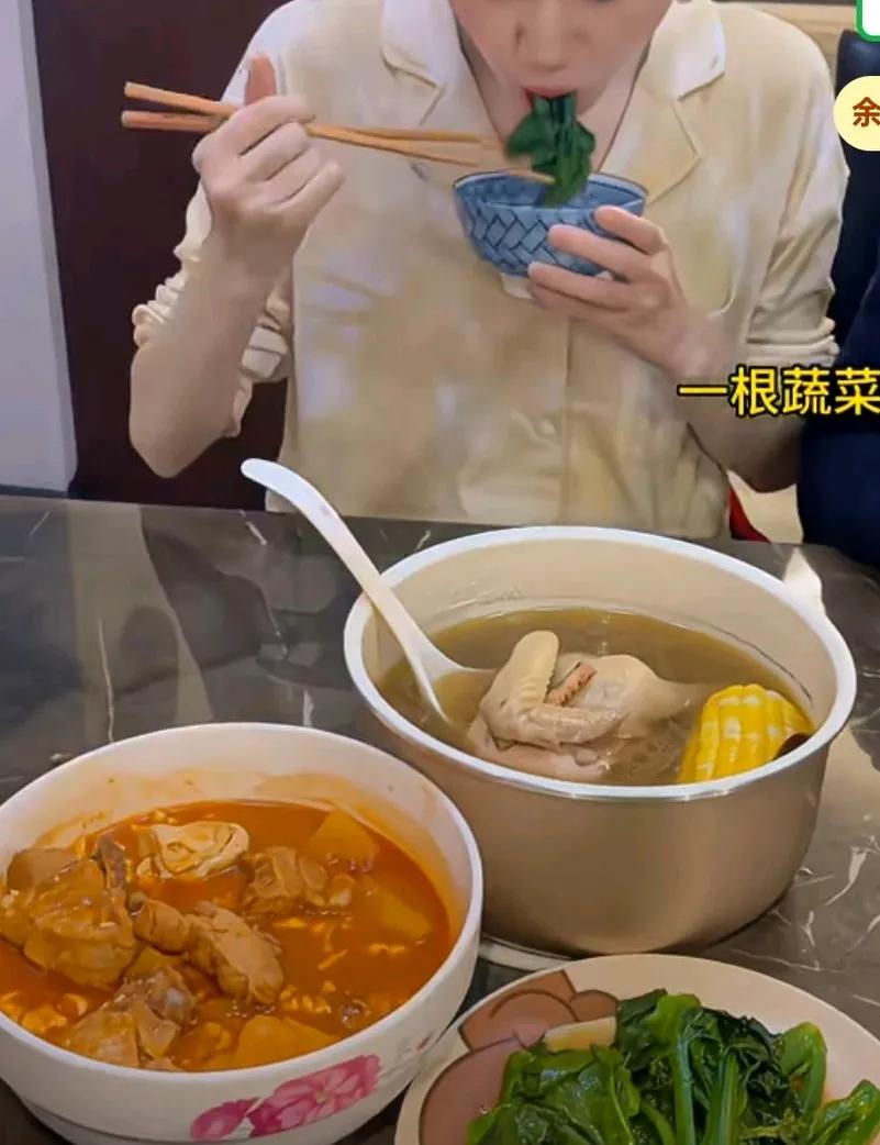 女生是家里最瘦的,想看看他平时吃饭习惯,我就是米饭吃了三口,青菜吃了一根,排骨汤喝了两口, 然后就吃饱了,起身离桌了,吃这么点不瘦才怪。 满桌子食物说连个皮毛都没动过,受了个皮外伤。 网友说,瘦人一般胃很小, 吃不了很多。 但也不一定, 有的人是干吃不胖, 有的人是喝口凉水都长肉。 胖也有遗传因素的, 瘦也遗传。 我家侄女就是吃的很少就很瘦, 遗传了我爸爸的体质。