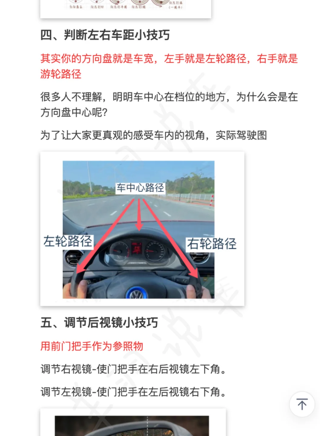所有的转弯都是以司机为中心做平行的转动,大弯看镜子,小湾看肩膀。把后视镜调整为,左镜右下角能看到前门把手,右镜左下角能看到前门把手,注意两侧前门把手代表的就是你的后车轮,后视镜内底部代表的就是你后保险杠的位置,行车中后视镜是上下分远近,横向看速度。转弯车速一般控制在30码以内。