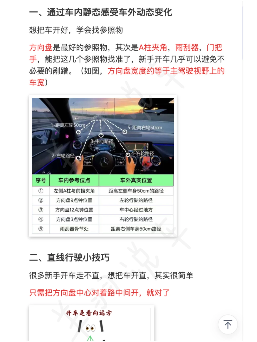 方向盘是最好的参照物,其次是A柱夹角,雨刮器,门把手,能把这几个参照物找准了,新手开车几乎可以避免不必要的剐蹭。(如图,方向盘宽度约等于主驾驶视野上的车宽)