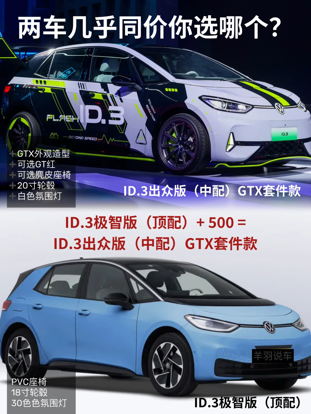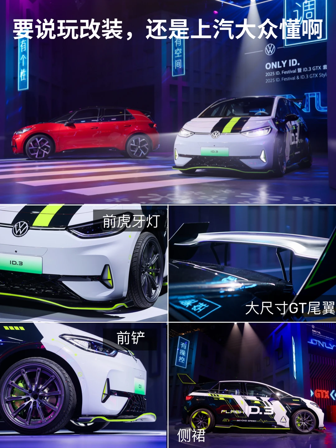 🚗上汽大众太懂改装了!ID.3 GTX套件款帅炸,政策真要放开?? ▪️朋友们!!上汽ID.3 GTX套件款它带着一身“合法改装”的信仰杀来了!纯电小钢炮的快乐,这次直接给你拉满!💥 ▪️要说玩改装,还是上汽大众懂年轻人! 这套ID.3 GTX套件款,范儿正、品质稳、合法上路不操心! 十几万的车,开出几十万的回头率!坐等新规落地,求上汽大众多整点这种帅炸的套件款啊! ▪️以前改个车跟做贼似的!但现在,上汽大众居然高调喊出“引领改装文化”?这底气,是响应新政策了?改空悬,合法上路不是梦? 🤯 ▪️现场动图看得我鸡皮疙瘩都起来了!这个专属GT红,绝了! 聚光灯下闪耀,暗光下深邃,跟马路上那些“普通红”完全不在一个level,高级感拉满!要不说还是上汽大众舍得下本,水性PPG漆面工艺这种原本都是用在豪车上的车漆现在ID.3 GTX套件款也是安排上了,不知道大家有没有感觉到上汽大众近几年对ID.3的偏爱!✨ ▪️黑底+亮眼红,座椅上那道道经典竖红线,GTI老粉DNA瞬间动了! 这配色就是GT车的信仰图腾,情怀值直接拉爆! ▪️没看错!GTX直接标配20寸大轮毂! 普通版选装得加2000?现在一步到位,现车开走!这性价比,香到没朋友! ▪️坐进车里才是高潮!大量Alcantara材质包裹! 配上骚气红缝线,这运动氛围直接顶穿天花板!听说国外GTX都没这么厚道?上汽大众这次真下血本了! ▪️ID.3中配GTX套件款: GT信仰拉满!战斗外观、Alcantara材质内饰、20寸轮毂…运动控、改装党、颜值党闭眼冲!🔥 ▪️ID.3顶配: 配置均衡,主打实用舒适,日常通勤稳稳的幸福!🚗 💰 关键它俩几乎同价! 萝卜白菜各有所爱!要炸街要态度,ID.3 GTX套件款就是你的态度名片!要低调要省心,聪明款顶配也很香! ❤️ID.3中配 GTX套件款只需要在ID.3 顶配的基础上加价500元。 ❤️ID.3 GTX套件款给ID.3注入的不仅是运动基因,更是年轻人的个性宣言! 上汽大众这波改装+政策响应,格局打开了!纯电小钢炮时代,ID.3 GTX套件款已就位!你,准备好接招了吗?