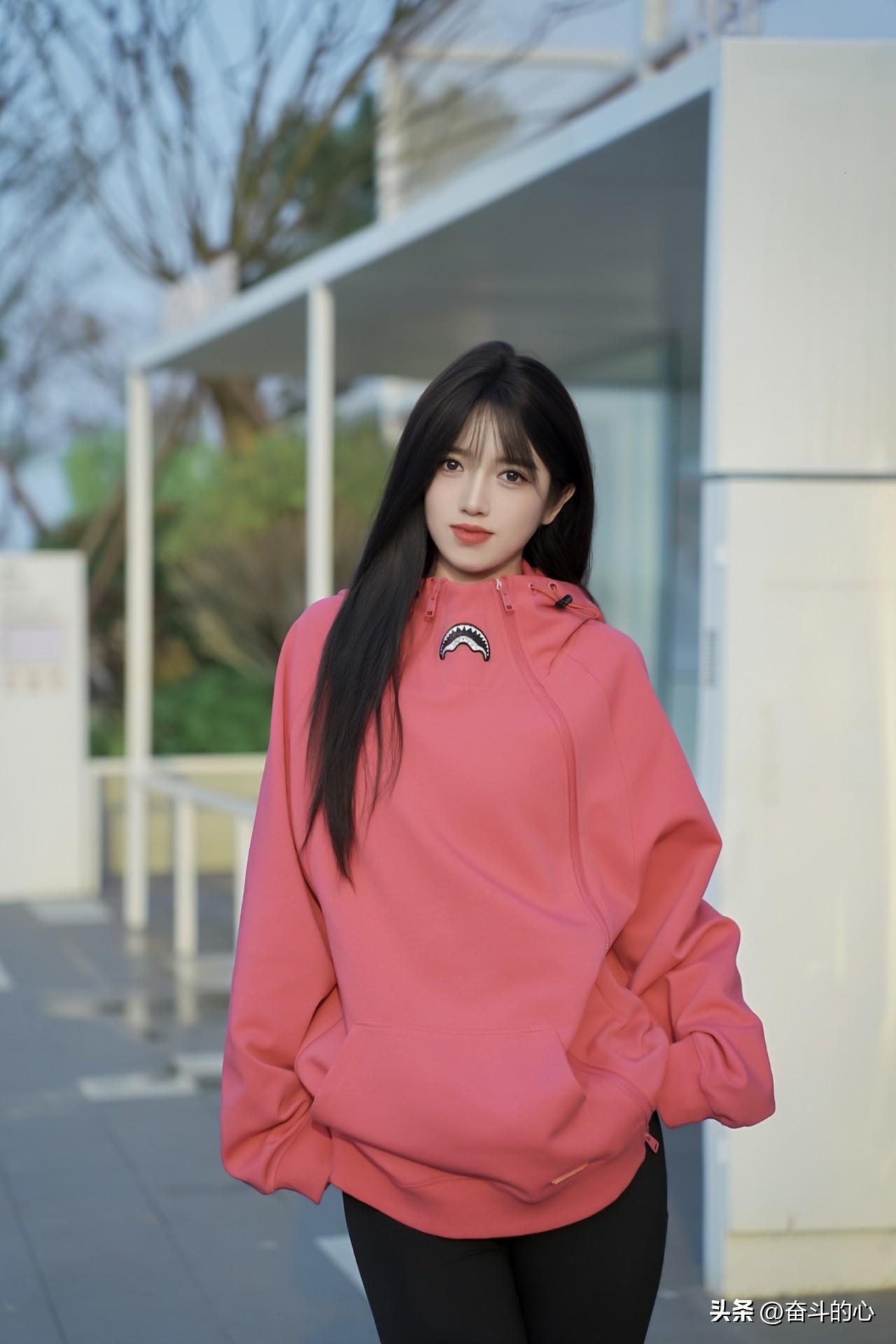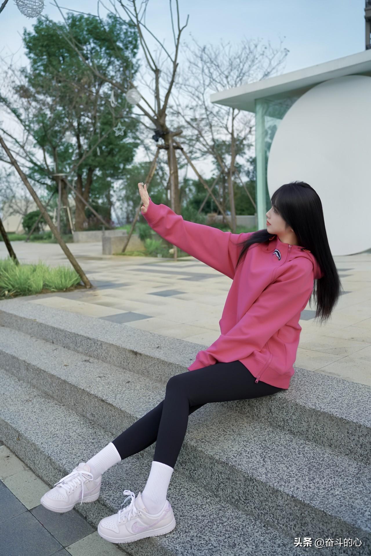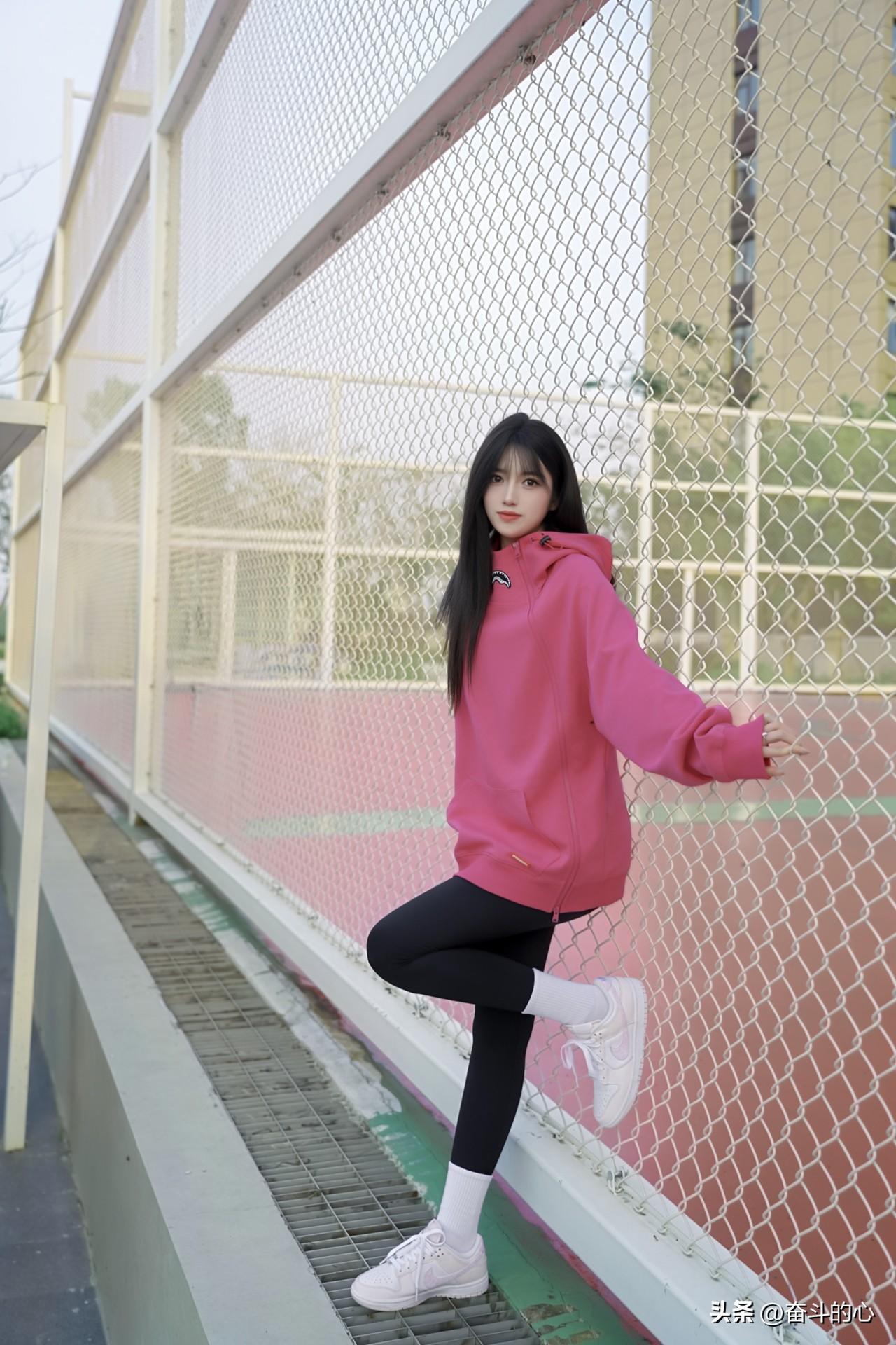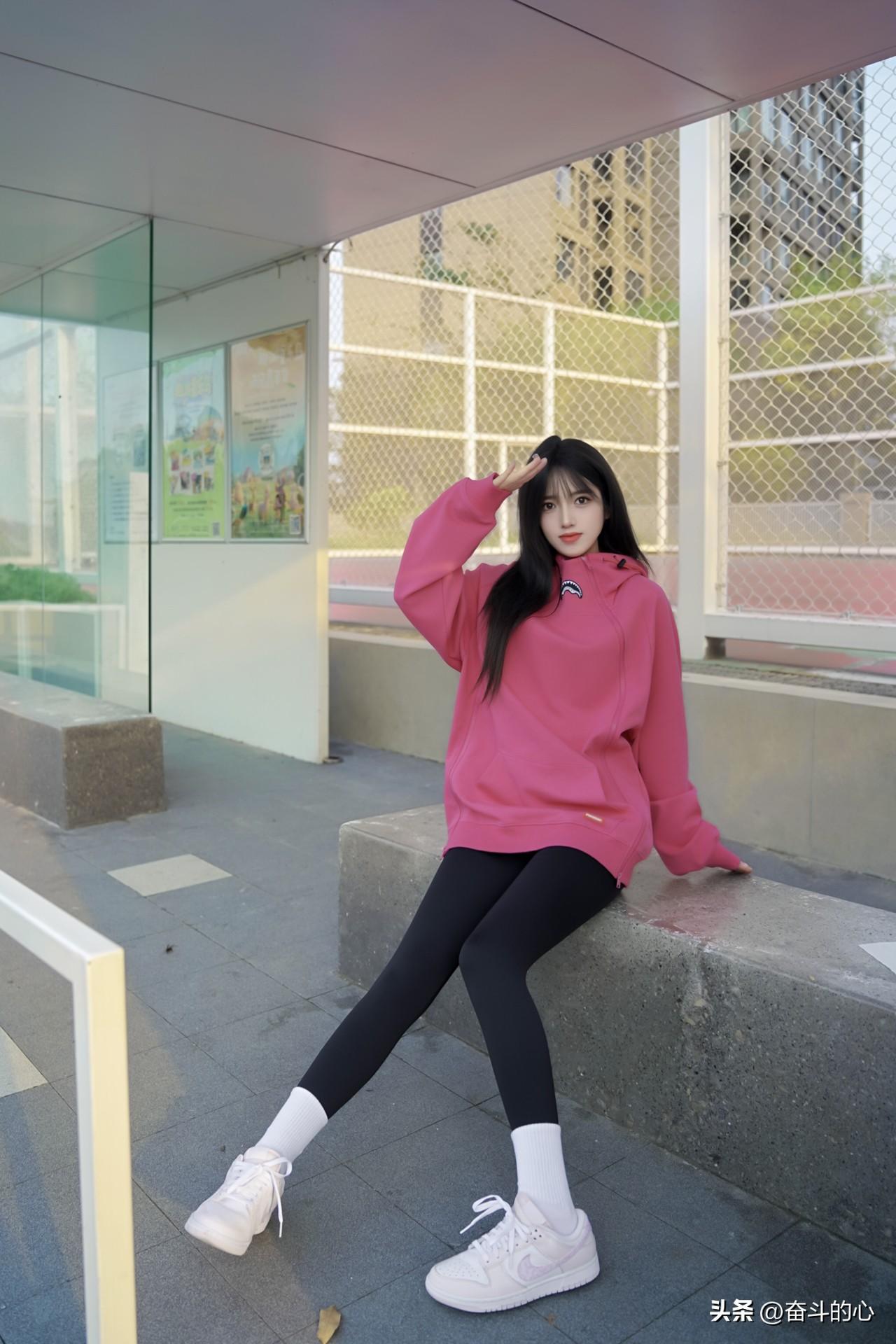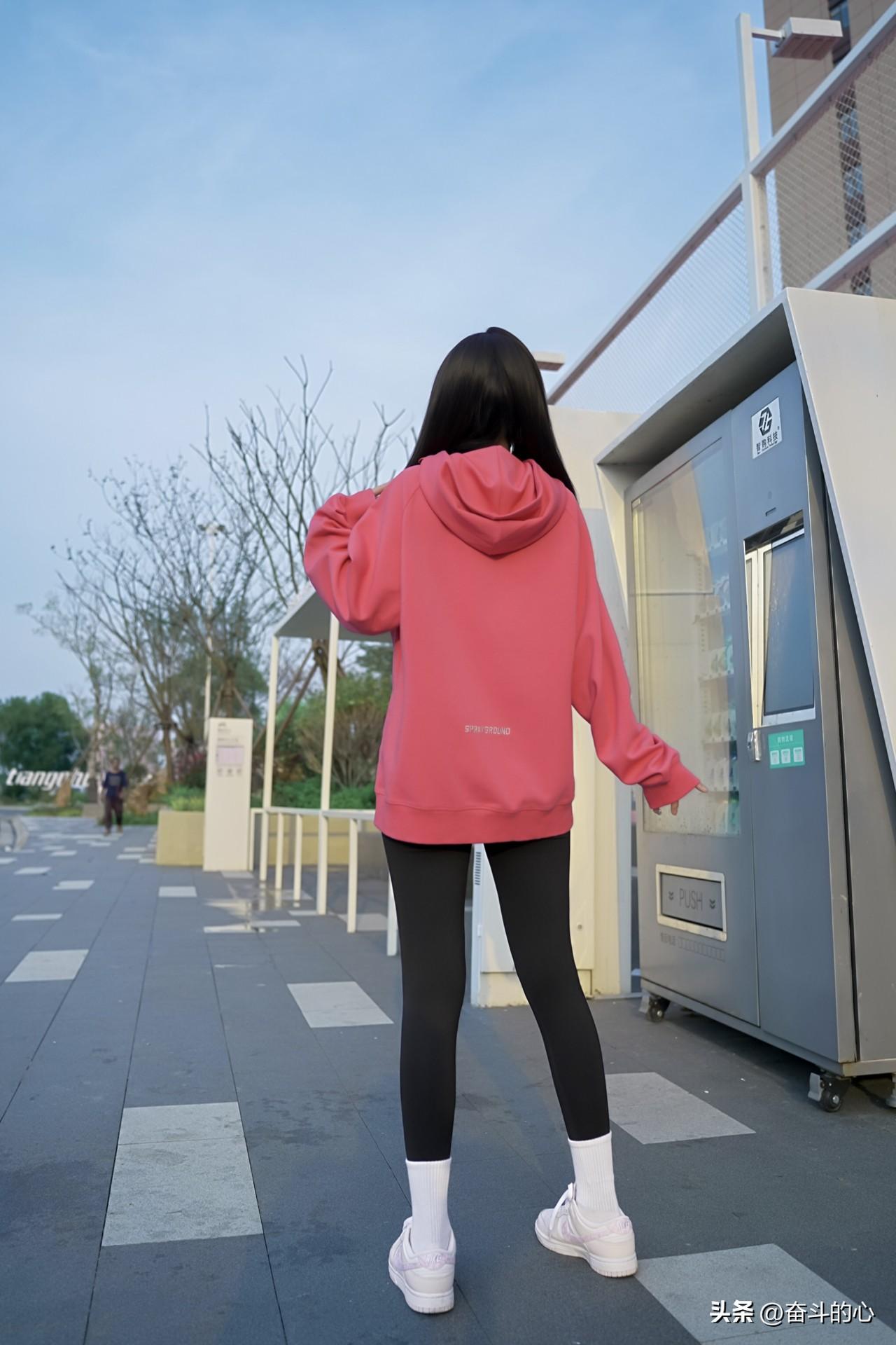 谁懂啊!玫红色连帽卫衣+黑瑜伽裤+小白鞋,活力感直接溢出屏幕✨ 卫衣颜色巨显白,宽松版型慵懒又藏肉,瑜伽裤把腿型衬得笔直,小白鞋一踩,运动感瞬间拉满,在球场边拍都像活力少女🎬 运动或日常出街穿太合适了,回头率爆棚,被路人夸“这个颜色好亮眼”~喜欢活力风的姐妹,这套闭眼冲!
