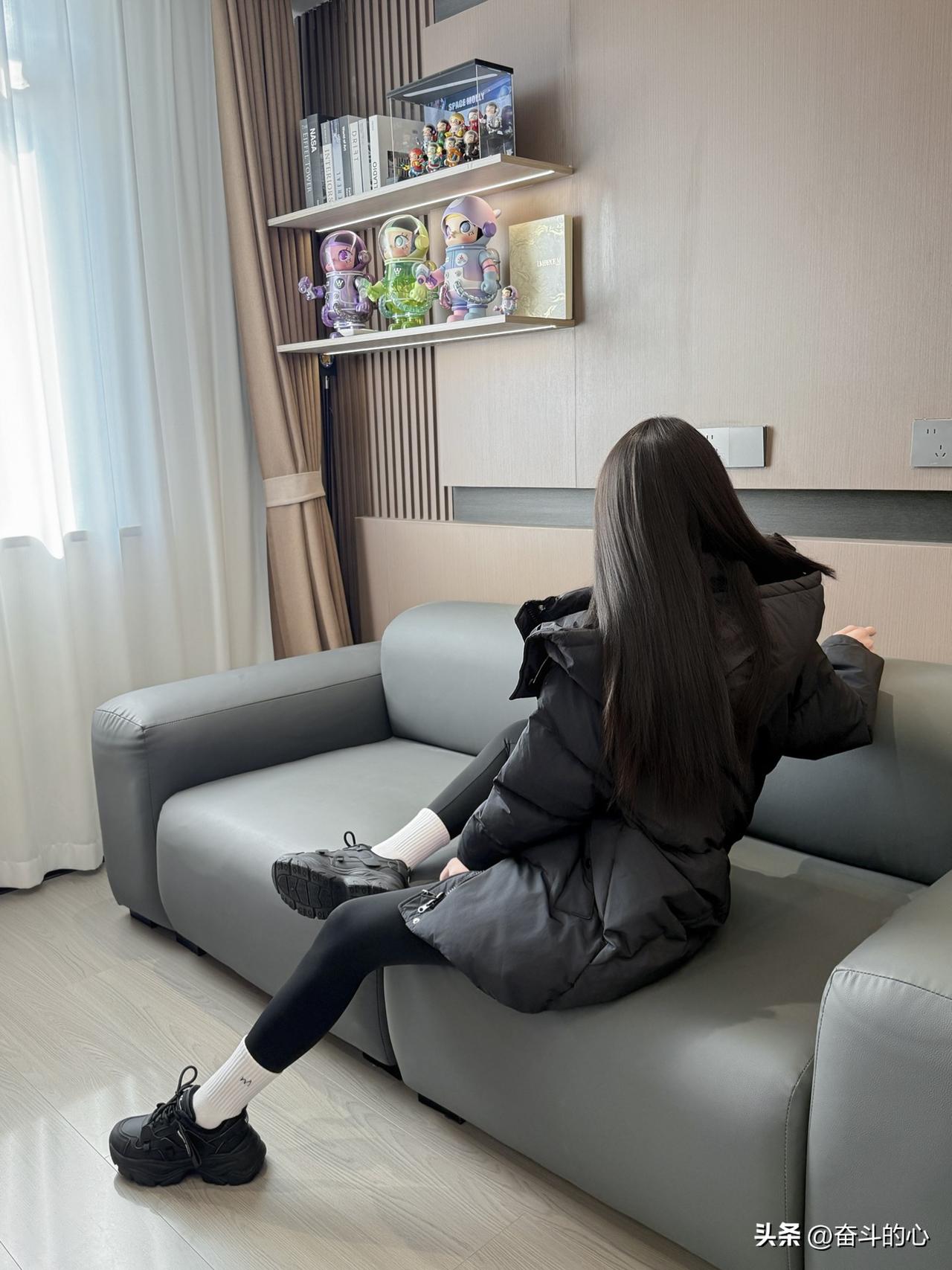 谁懂啊!黑色中长款羽绒服+黑瑜伽裤+厚底鞋,酷飒又保暖,直接把冬日安全感拉满✨ 羽绒服宽松却不显臃肿,瑜伽裤把腿型衬得笔直,厚底鞋一踩,腿长瞬间up,全黑look高级感爆棚,在家拍都像街拍达人🎬 降温天穿既抗冻又能slay全场,被朋友夸“把羽绒服穿出了时尚感”~怕冷星人+酷妹,这套闭眼锁死!