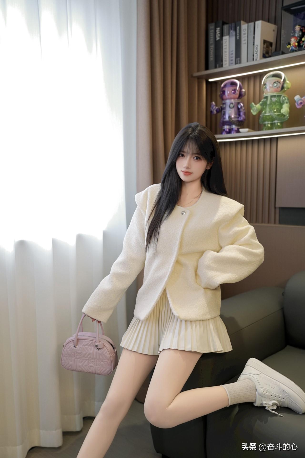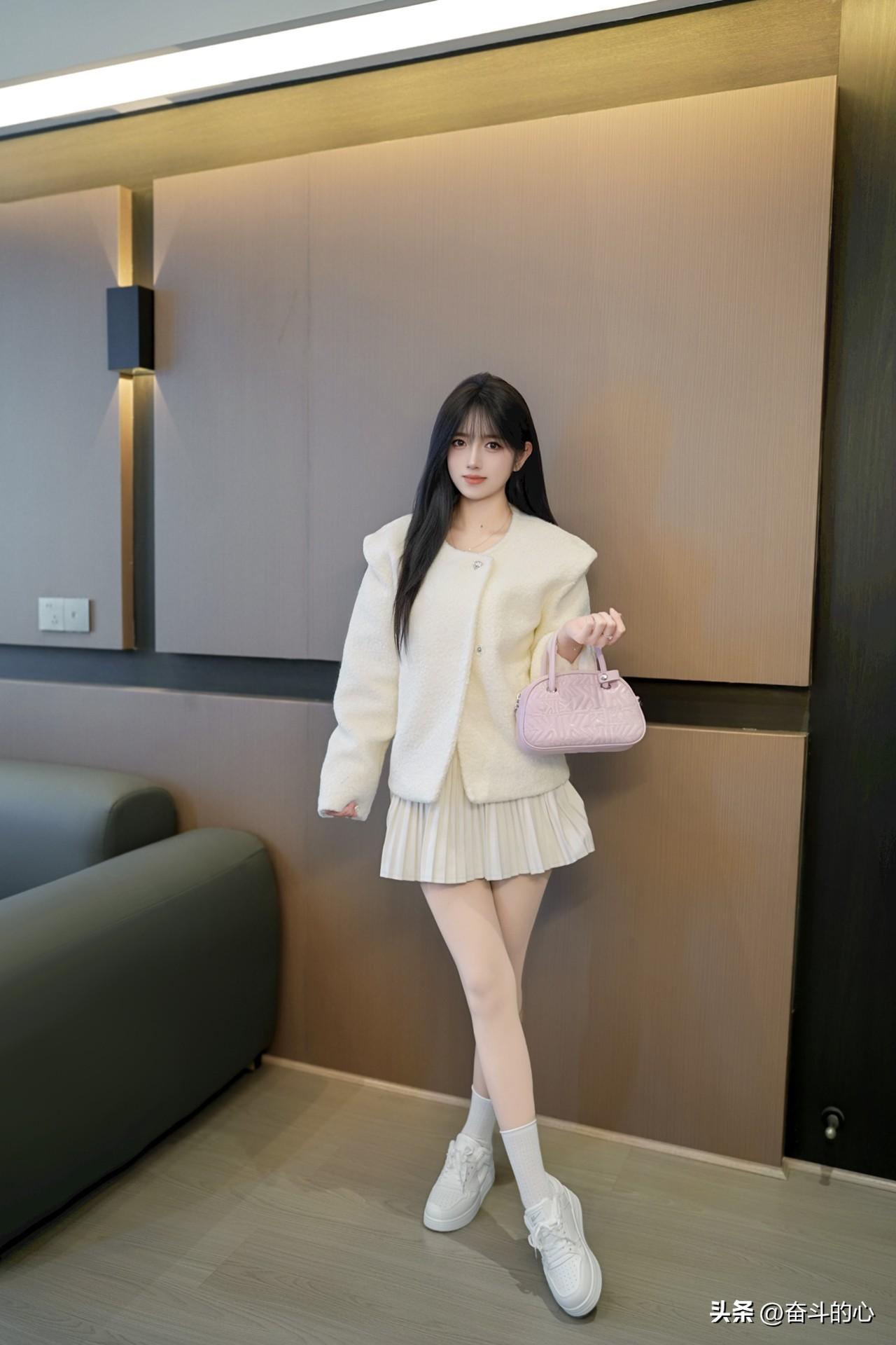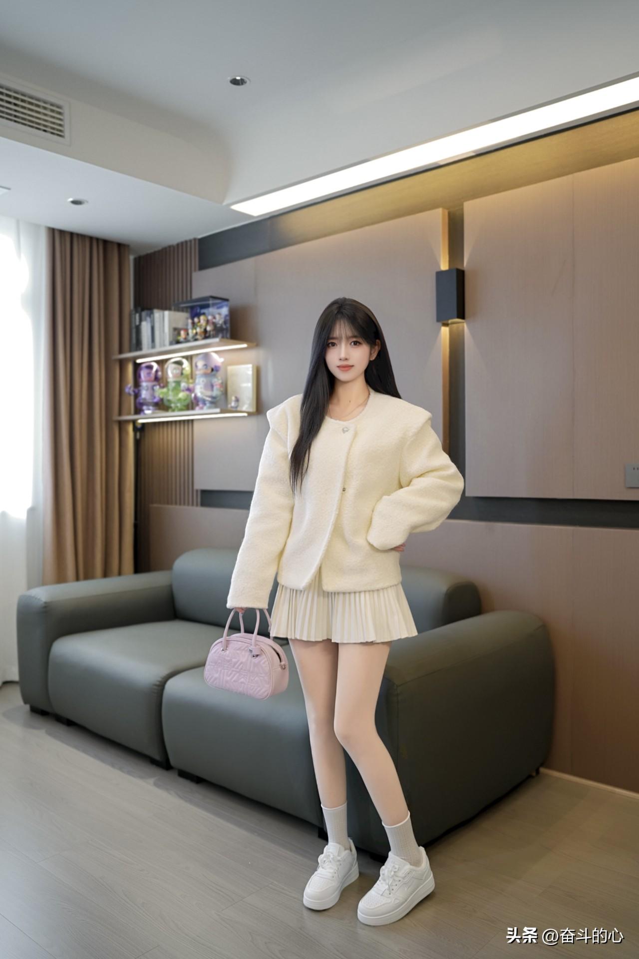 谁懂啊!米白色毛绒外套+百褶裙+小白鞋,再拎个粉包包,温柔感直接溢出屏幕✨ 外套软乎乎的像云朵,百褶裙一搭少女感拉满,小白鞋踩上更显清爽,粉包包一拎,甜妹氛围直接锁死,在家拍都像韩剧里的女高中生🎬 约会或和姐妹逛街穿太合适了,被夸“好乖好温柔”~甜妹风想入门的姐妹,这套闭眼冲!