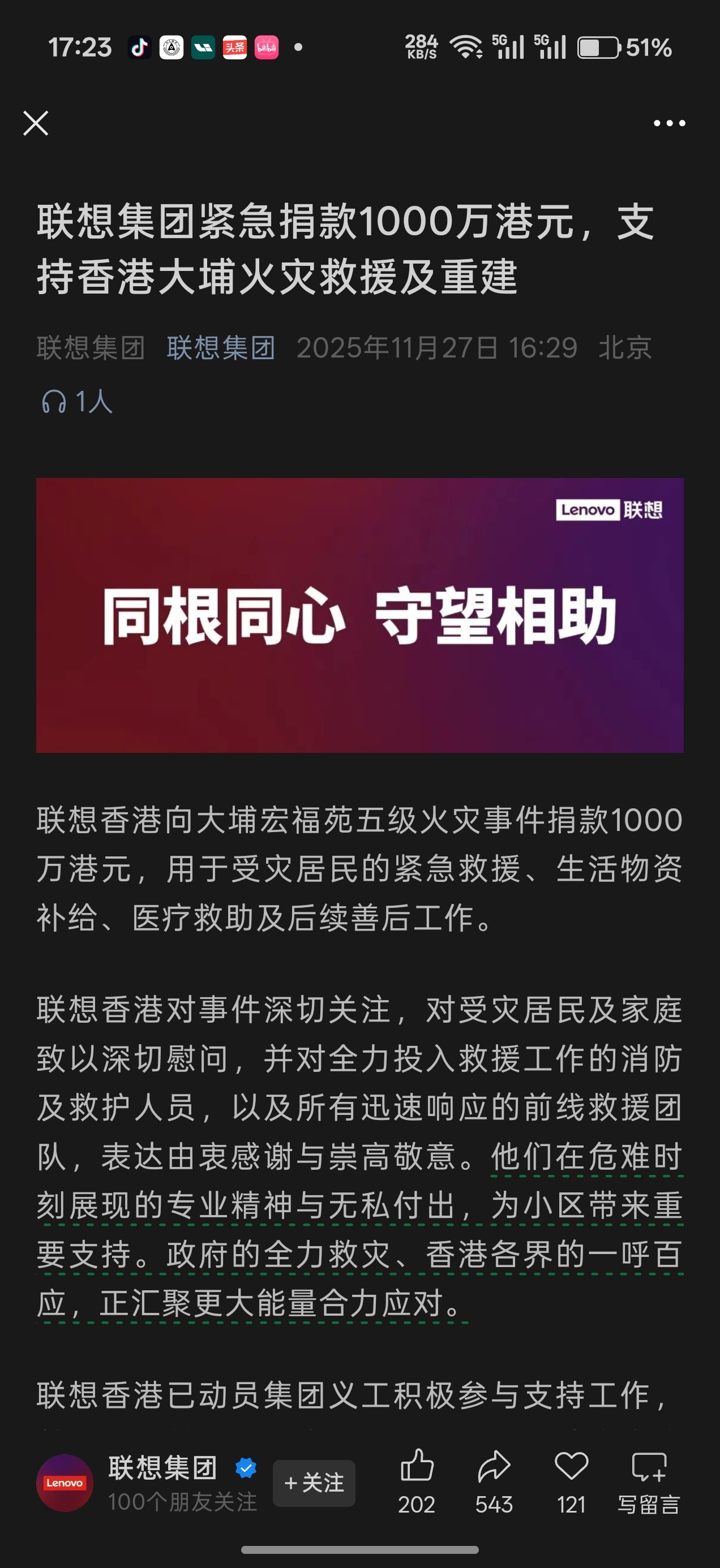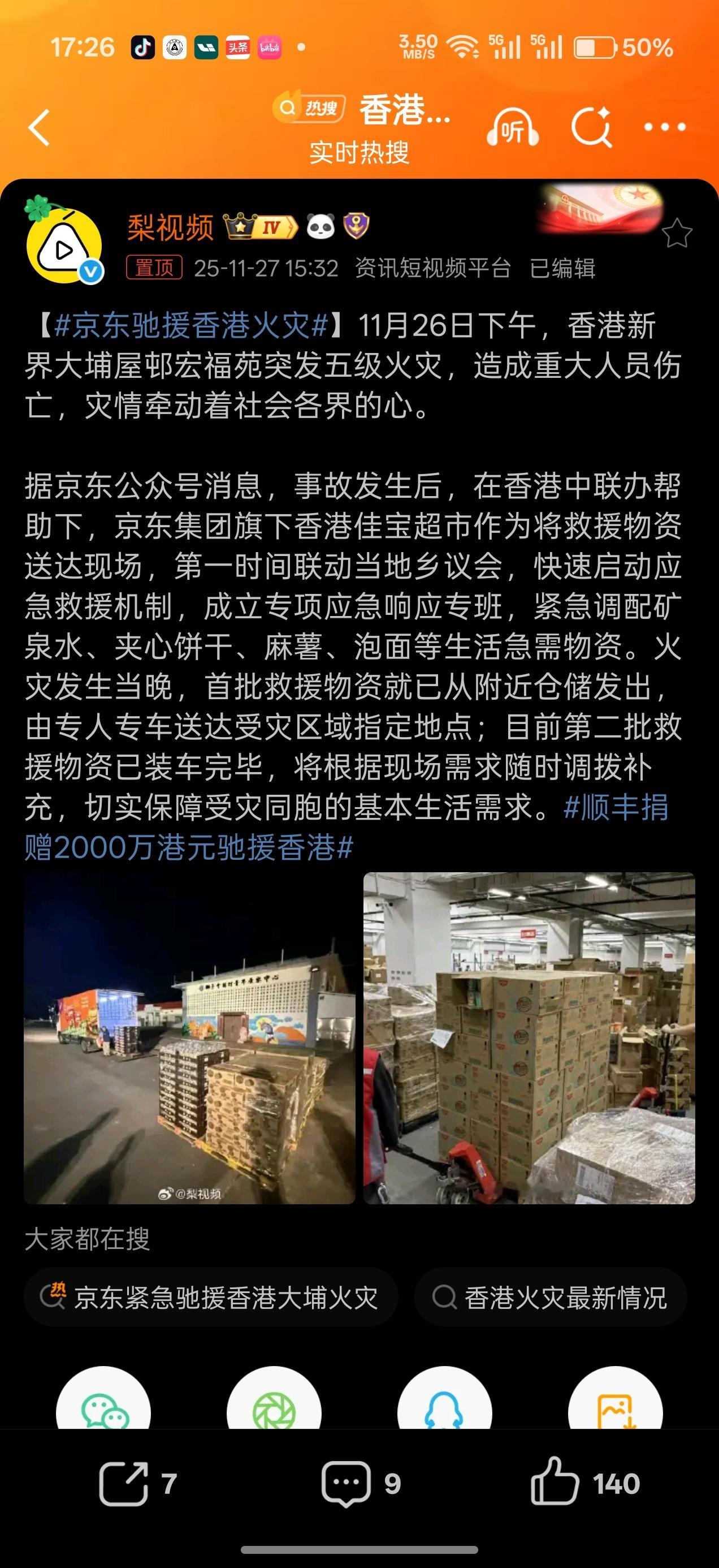香港起火大楼内发现生还者感谢这些企业的捐款,虽然你们捐款没能上热搜,但是我尽我的