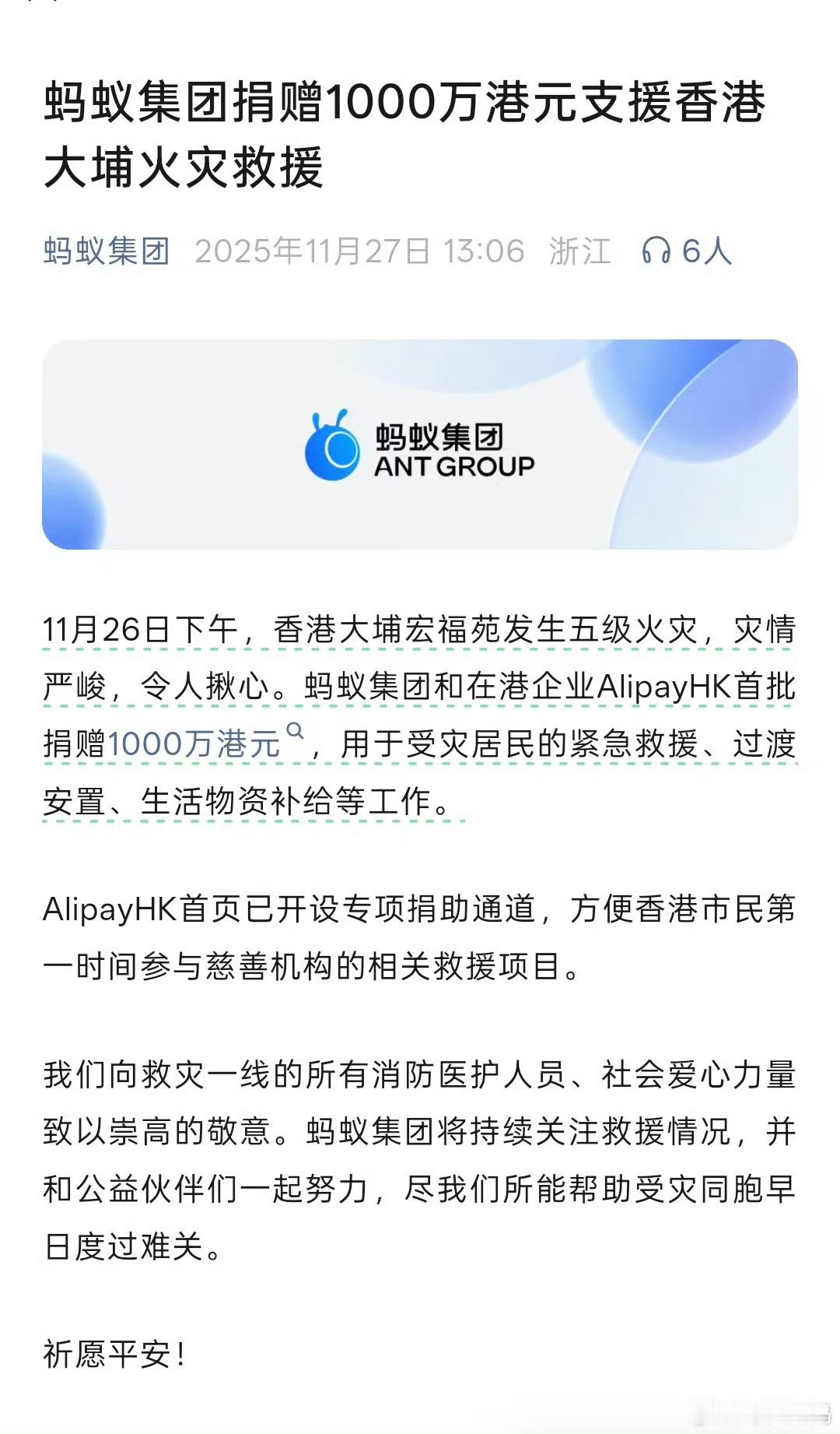 香港起火大楼内发现生还者感谢这些企业的捐款,虽然你们捐款没能上热搜,但是我尽我的微薄之力帮你们宣传一下感谢!感谢!