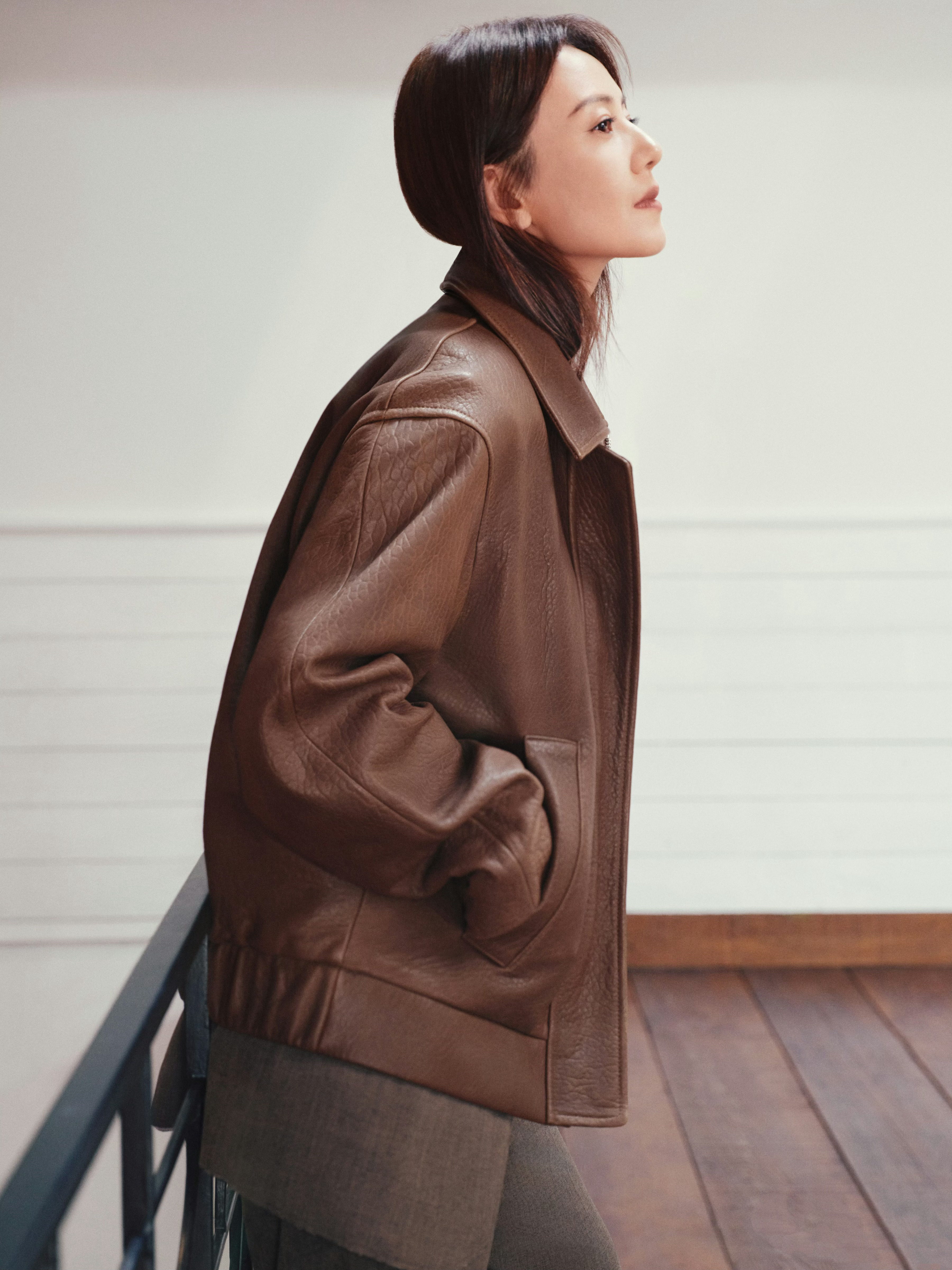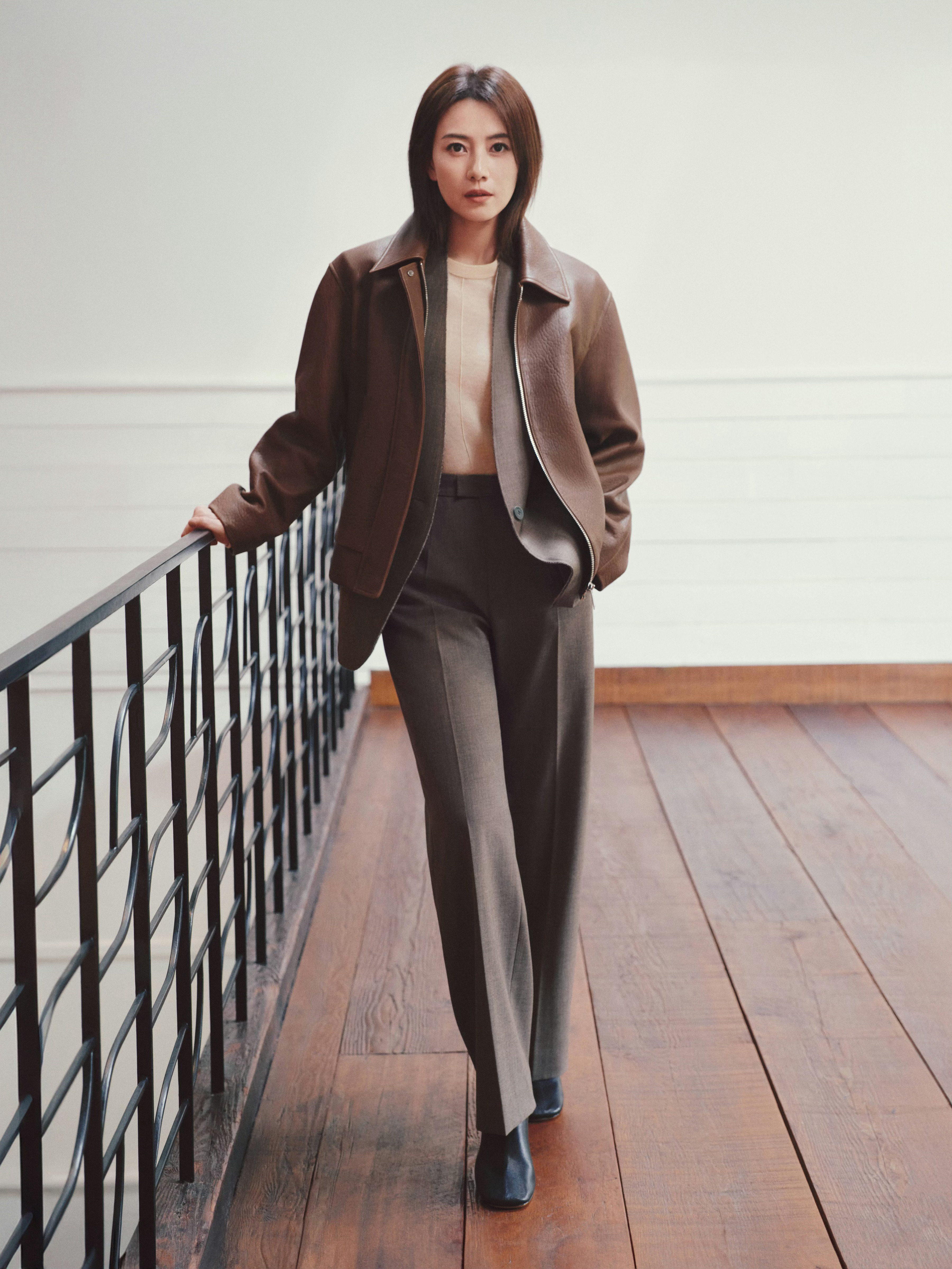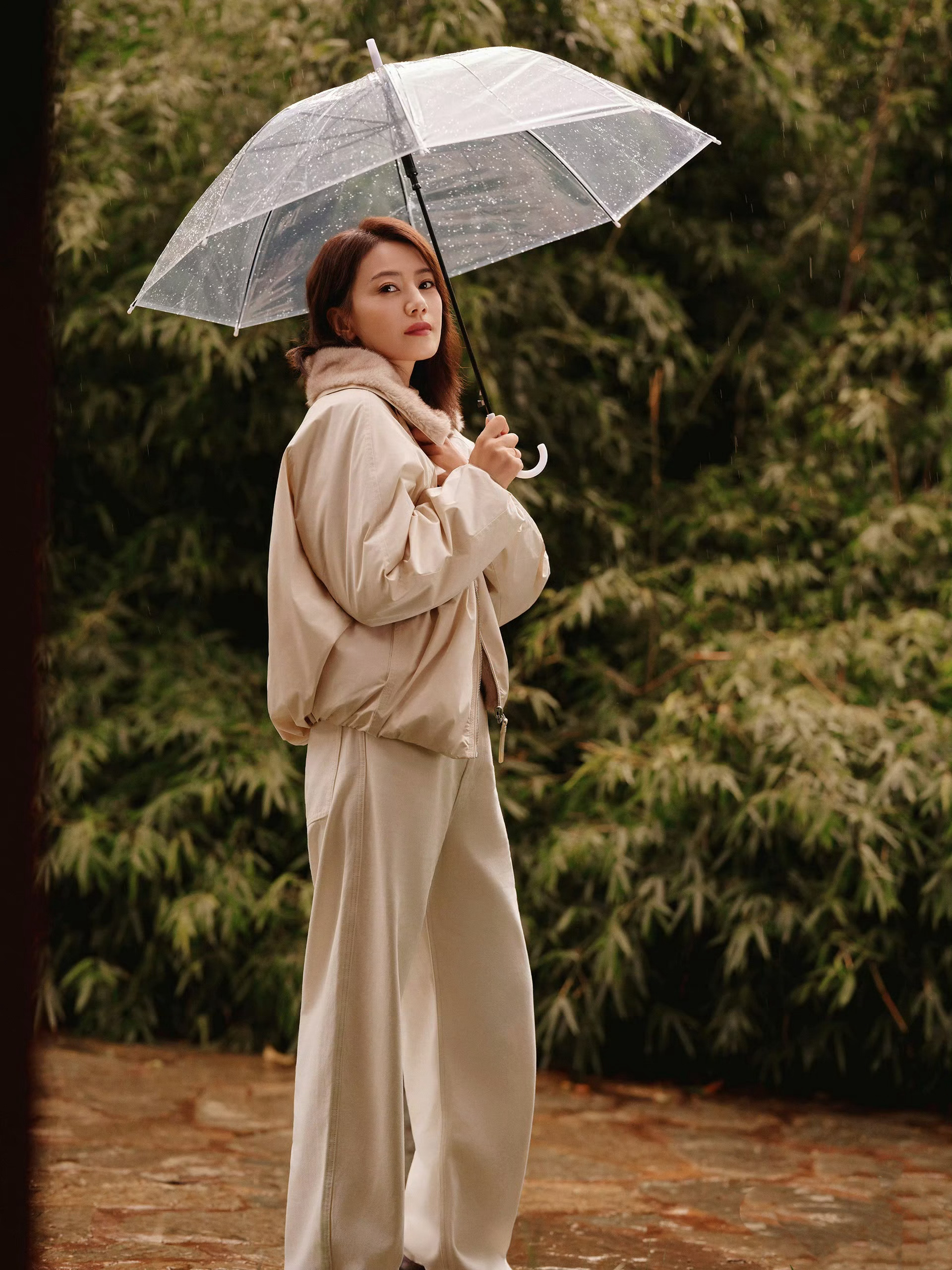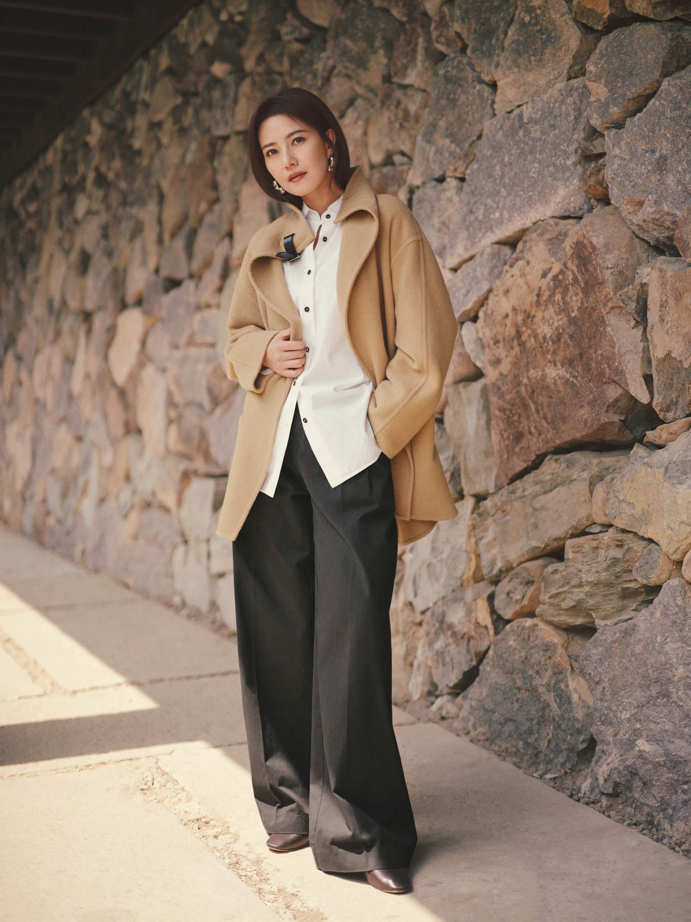 以大地色系搭宽松廓形,简约高级,是都市女性秋冬穿搭范本。高圆圆