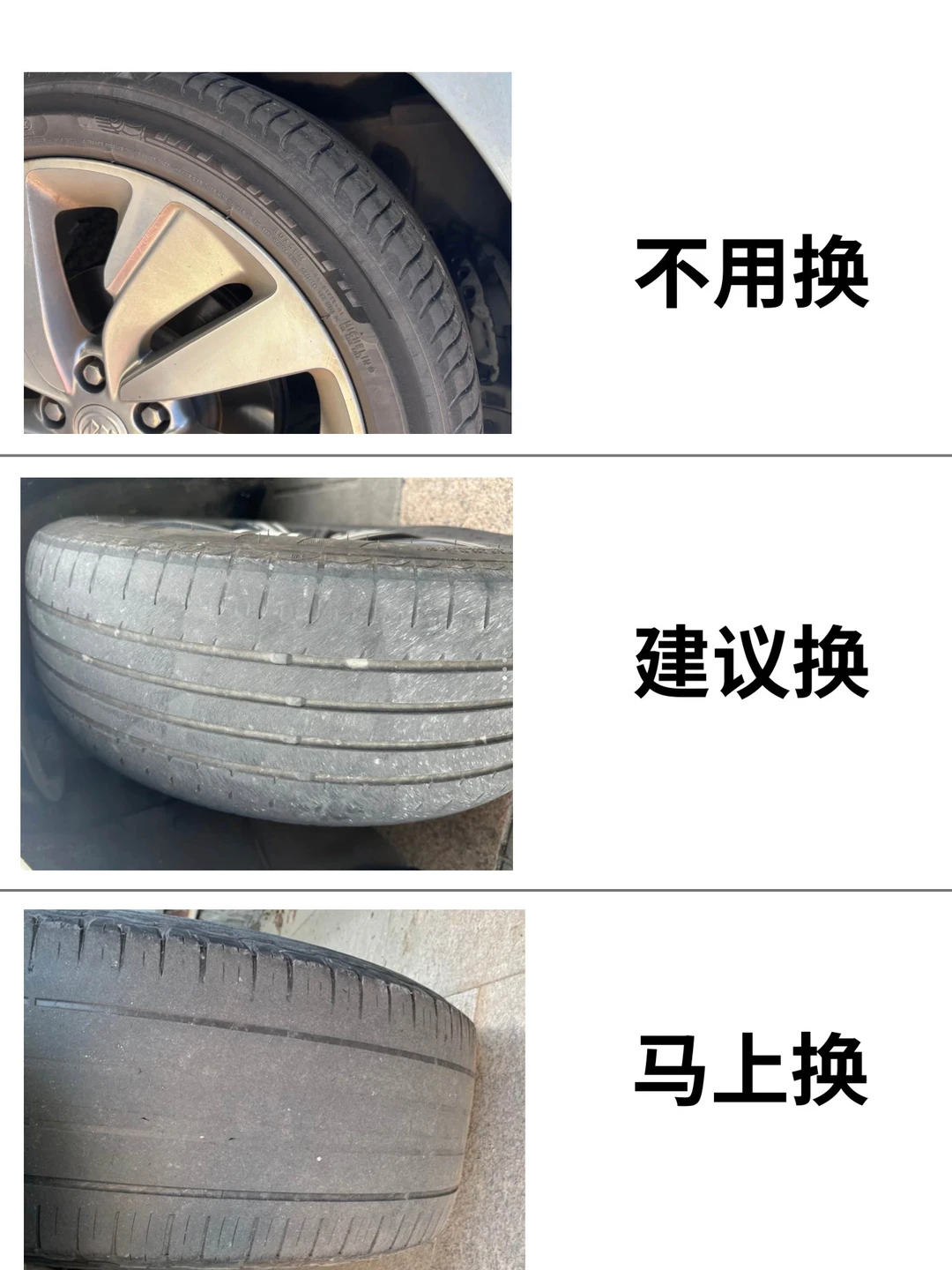 ✅以下几种情况需要更换轮胎: