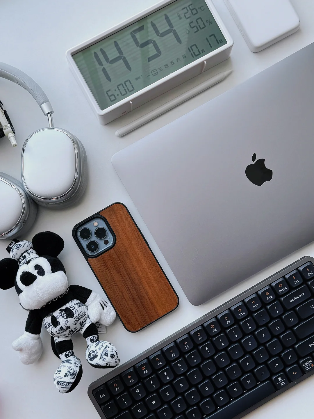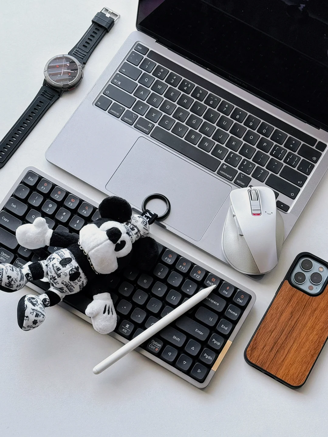 作为一个标准i人 来看看我书桌上的日常数码好物们吧! . ☑️ Apple MacBookPro 13寸 其实💻我现在用的少, 日常大多数还是喜欢用iPadPro . ☑️ 米奇盲盒蜜蜂罐 迪士尼100周年限量款 作为米奇控,必须拥有呀! 开到的是米奇船长,平时会挂在背包🎒上。 . ☑️ Lofree矮轴键盘⌨️ ☑️ elecom笑脸鼠标🖱️ ☑️ benks磁吸充电宝 ☑️ 唐麦蓝牙耳机🎧 ☑️ 胡桃木手机壳 ☑️ 多功能电子钟