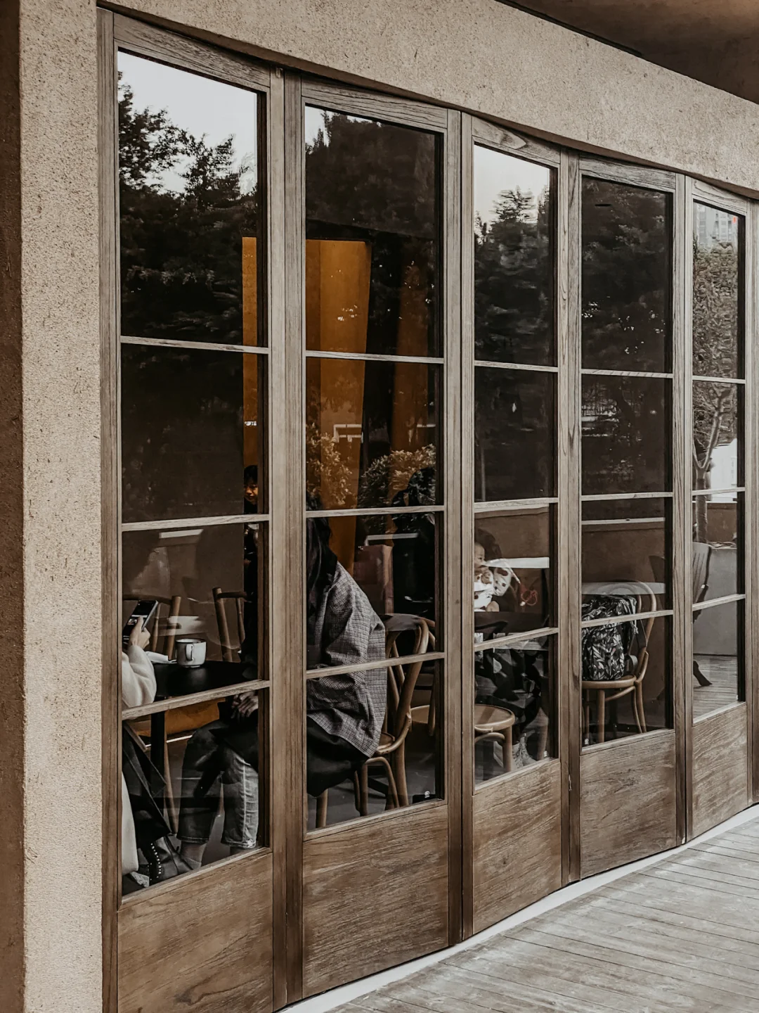大面积玻璃木门 在冬日暖阳下 有一种法式与日式混淆的美感