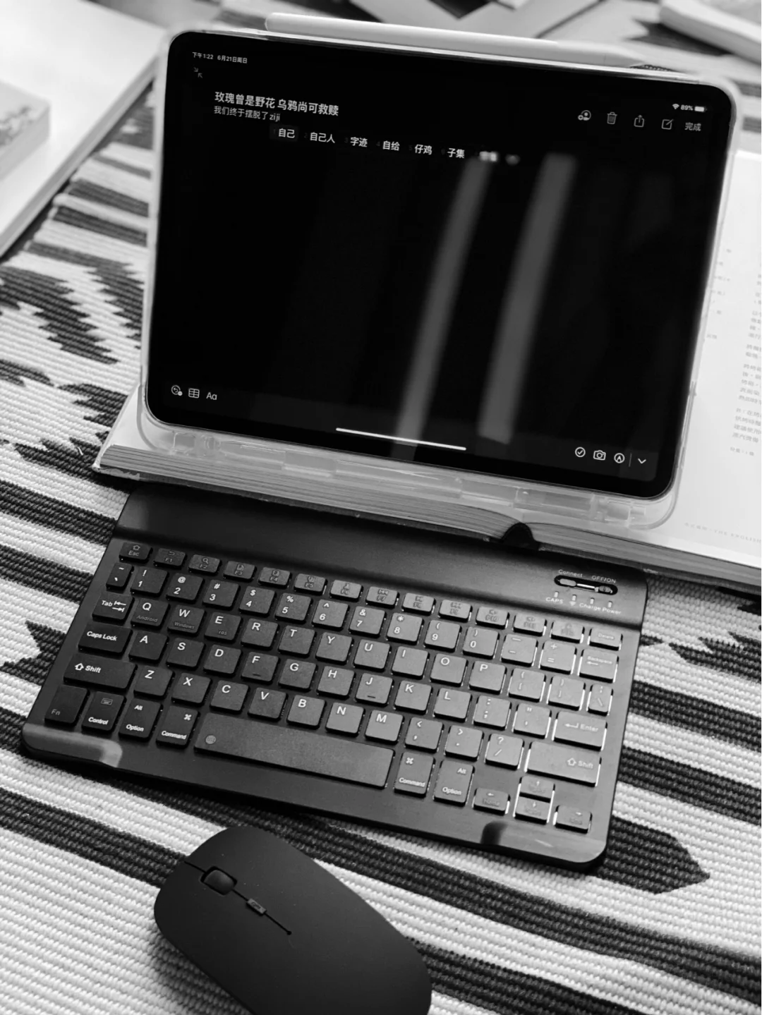 键盘我个人没有很需求。但也还是顺手买了一个。9.7寸的蓝牙键盘,很薄。送了鼠标🖱。45元
