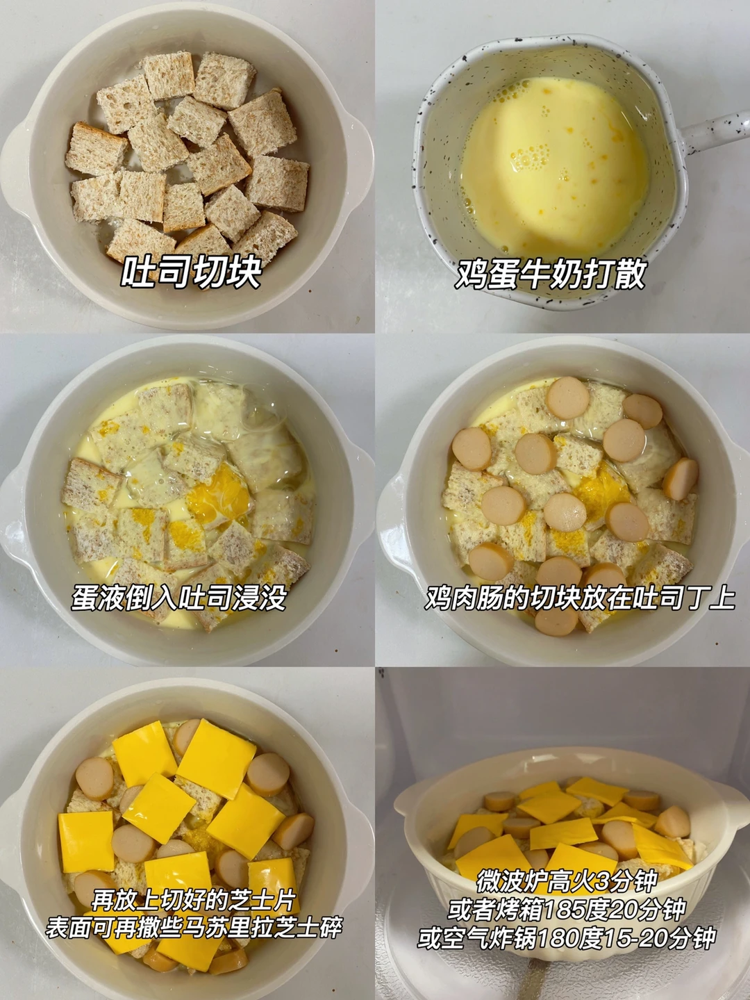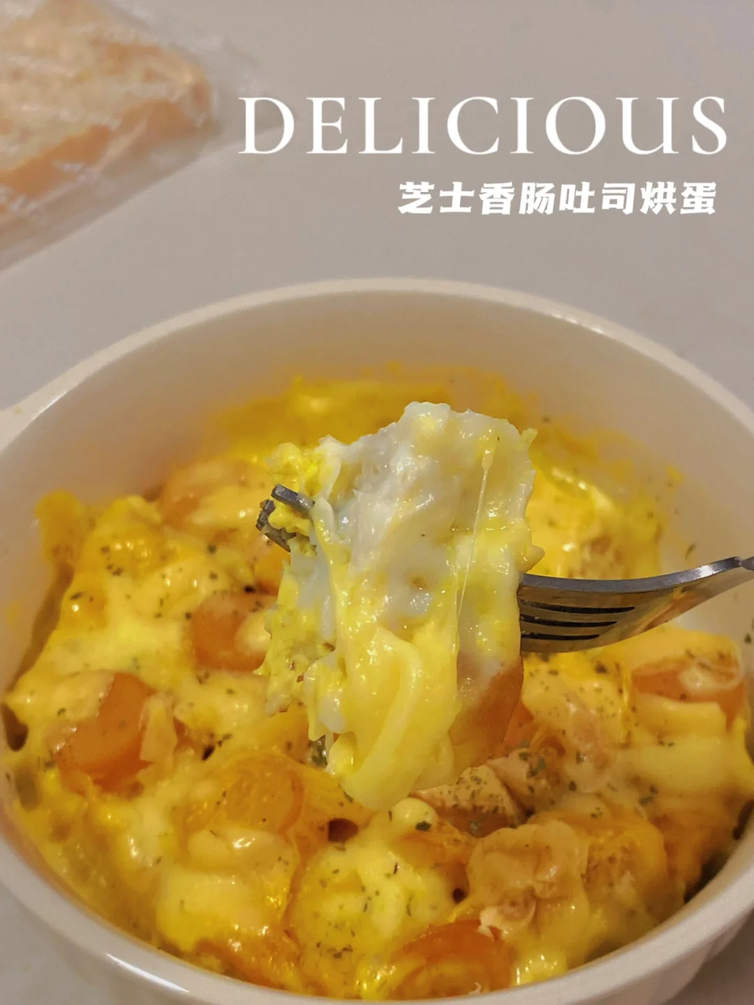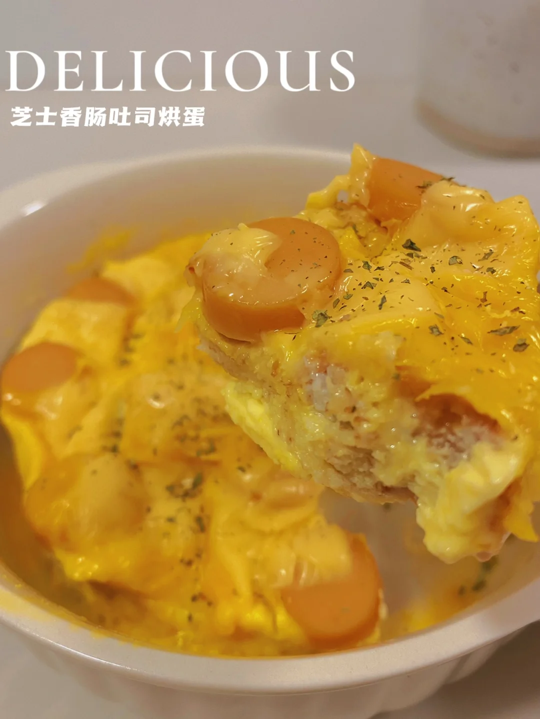 👩🍳芝士香肠吐司烘蛋,微波炉懒人版,讲真,这个配比,芝士刚刚融化拉丝,内里还是湿润的‼️