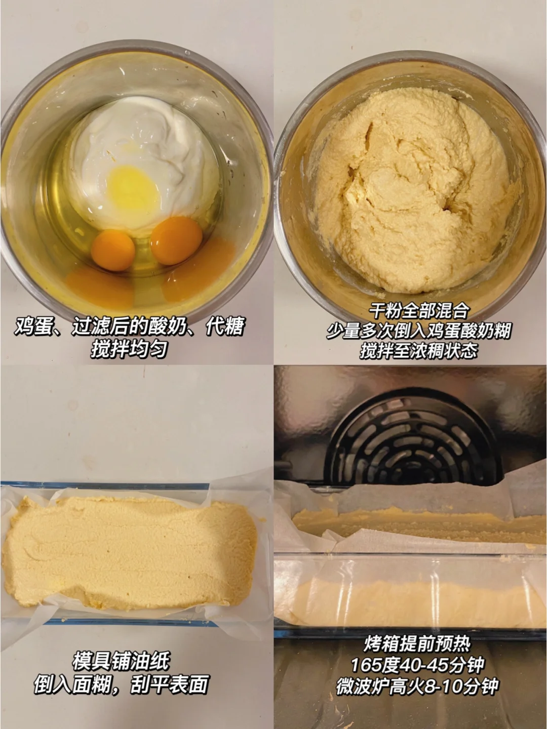 👩‍🍳无油无面粉,低脂椰香乳酪磅,口感绵密湿润,特别细腻,这个比列绝绝子‼️ 💕48卡/块(10-12块)|烤箱/微波炉都🉑️ 🌈食材搅搅就行‼️减脂、健身、生酮、乳酪控、磅蛋糕脑袋冲‼️ . 🍃食材(581卡/条-23*10*6👉附热量表): 椰子粉60g 燕麦纤维40g(🉑️换杏仁粉) 浓稠酸奶(酪)300g 鸡蛋2个 泡打粉3g 🌈粉类可混合100g;酸奶酪提前过滤,质地无需特别厚,带些流动性最佳;粉类不同,所需酸奶酪的量会不同,适量增减,面糊成粘稠状即可 . 📖简单步骤一看就会,直接翻图8⃣️ 🌈建议冷藏后再切,口感更绵密清爽,蛋糕体紧实,入口即化,酸酸甜甜‼️一份约能切10-12厚片‼️微波炉版蓬松会不如烤箱,自行选择 . 食材简单,美味不简单‼️ 减脂低卡甜品,配咖啡超棒‼️一份可2-3人食,记得冷藏或冷冻储存‼️ ㊗️仙女们越吃越瘦‼️