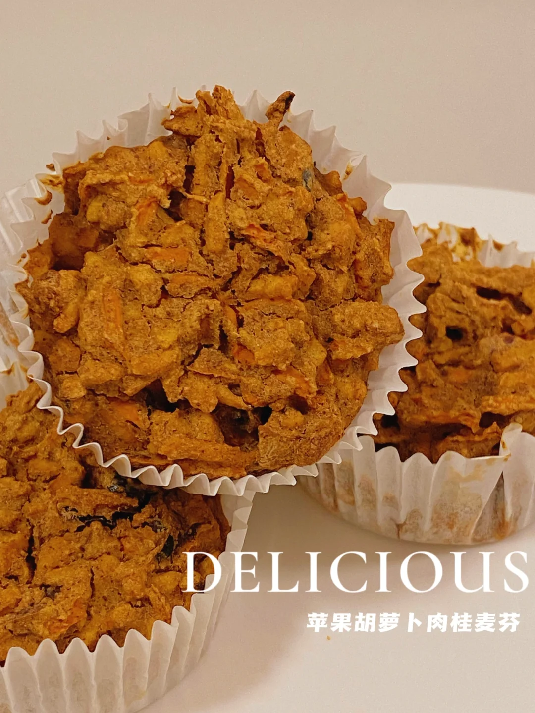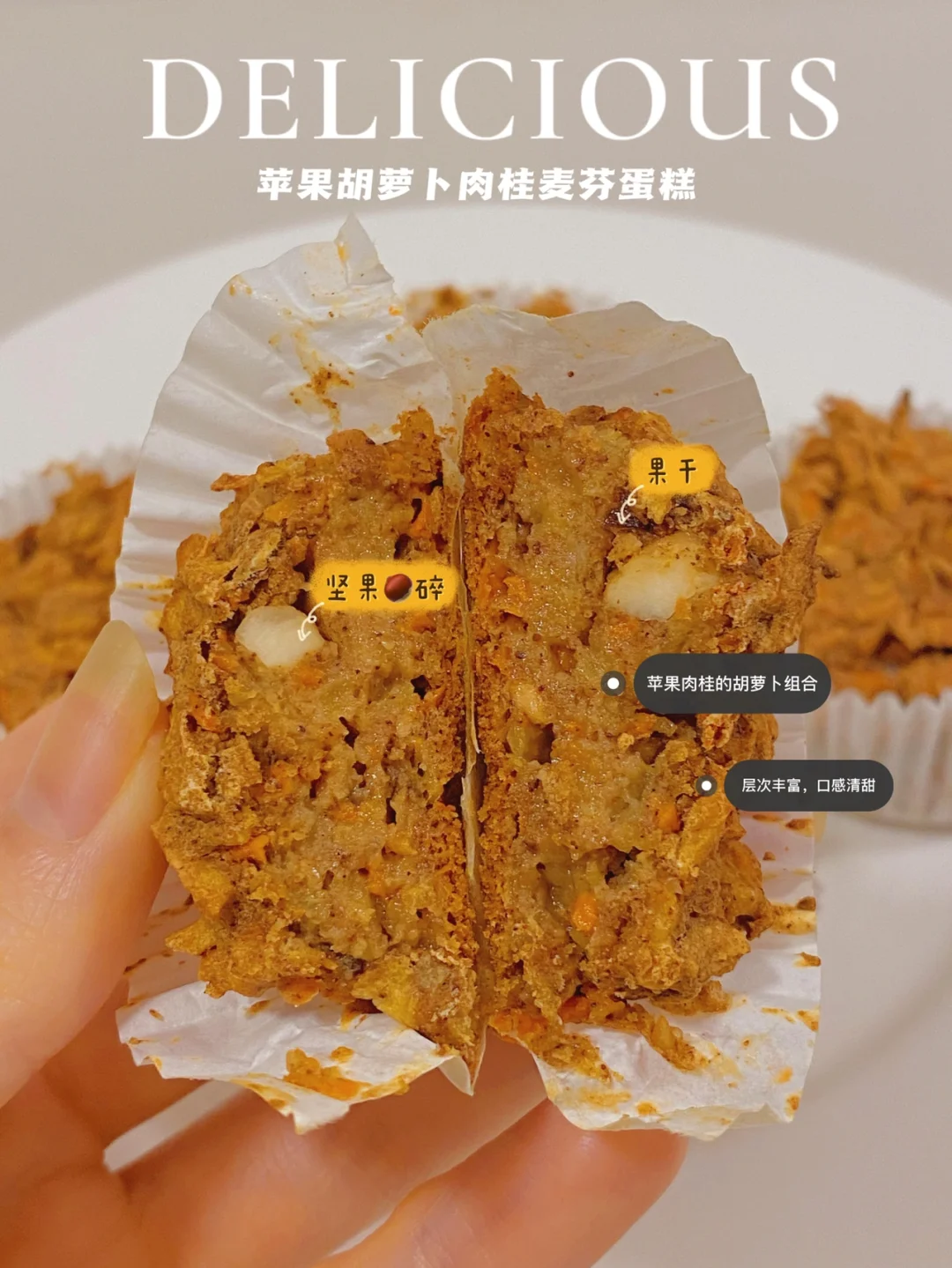 🔥无油无面粉‼️苹果肉桂胡萝卜麦芬‼️仅50卡