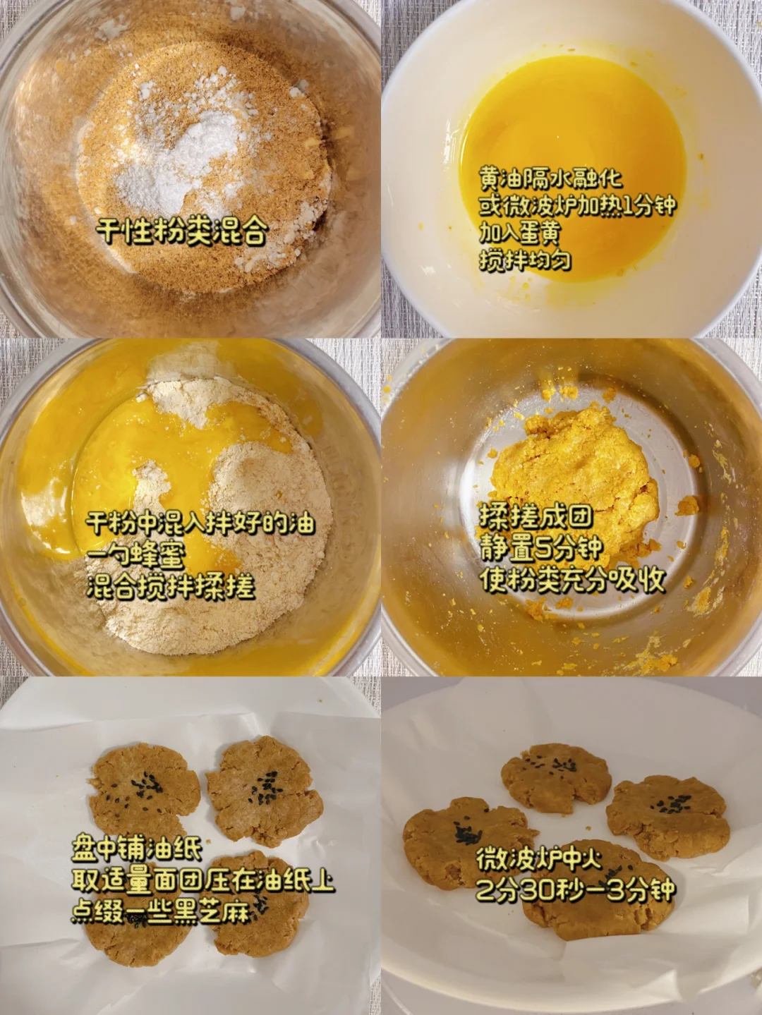 🌈:三种粉类共50g,任意一种无法集齐,可用其余代替(加了杏仁粉的桃酥真的很香,建议少放些中和)