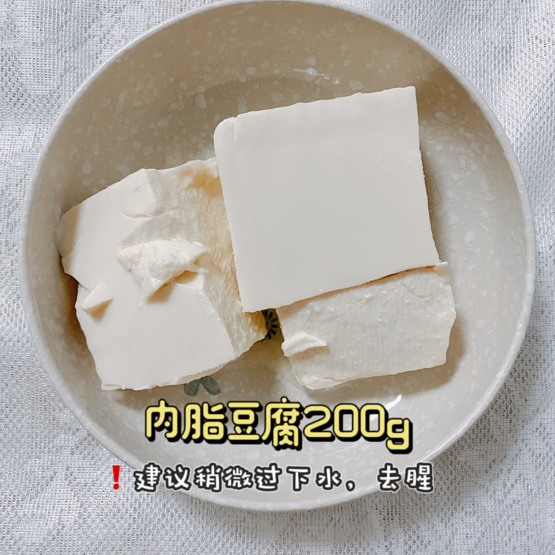1⃣️、200g内脂豆腐过水去下豆腥