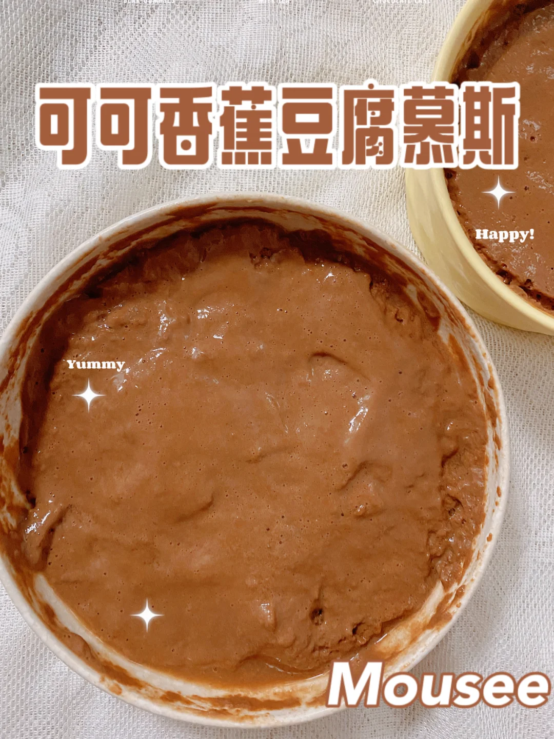 【可可香蕉豆腐慕斯🍮】无糖油、无面粉,烤箱微波炉都可以不用,讲真,有手就能做!备好食材10分钟就能搞定,快手夏日甜品你值得拥有!