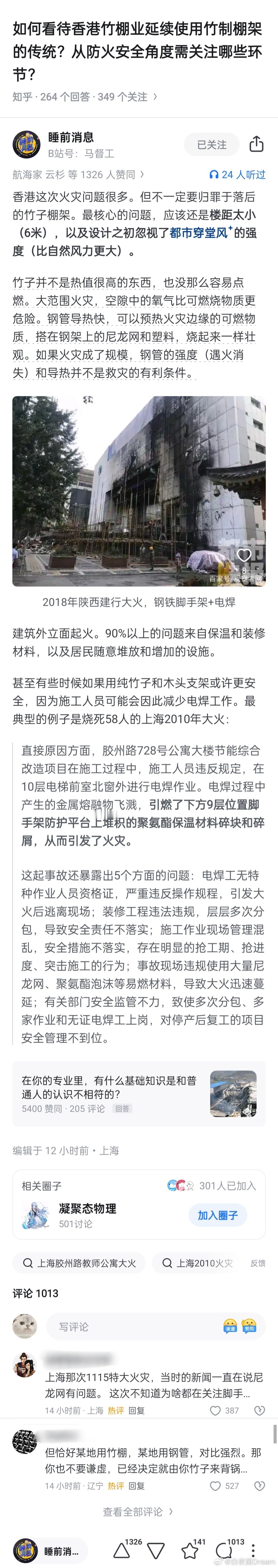 如何看待香港竹棚业延续使用竹制棚架的传统?从防火安全角度需关注哪些环节?香港火灾已有75人遇难