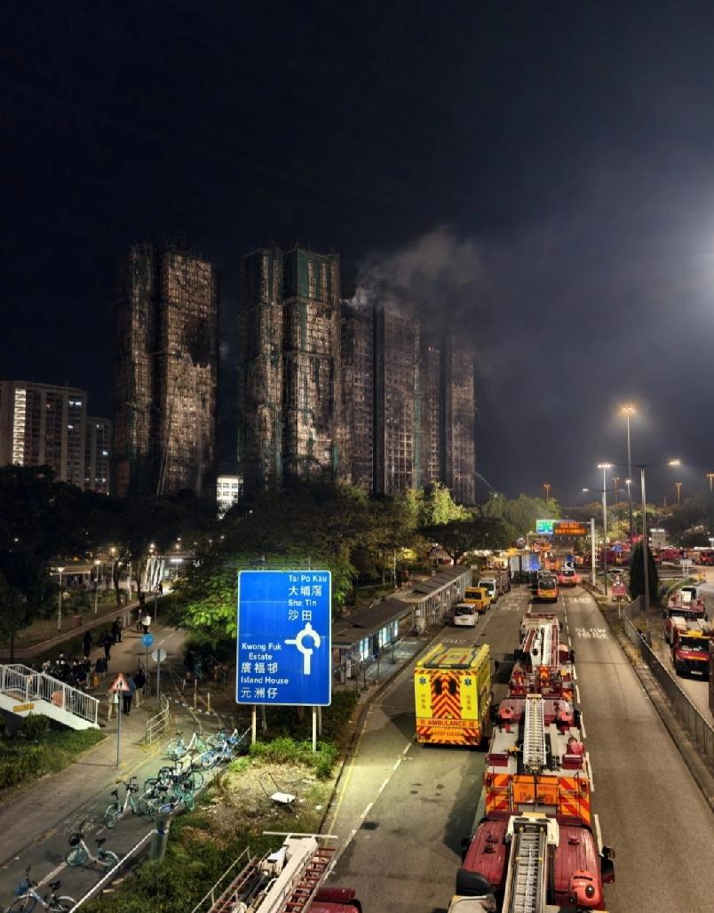 周三(26 日),拥有近 2000 个单位的香港大埔居屋宏福苑发生五级大火,截至目前,已造成至少 83 人死亡,其中包括 1 名 37 岁的消防员殉职,逾 200 人失联。部分居民死里逃生,但不少人称仍与家人失联,有人赶赴现场,在寒风中苦候消息,盼早日寻回家人。 27 日,香港消防处表示,预计(28 日)早上 9 点前可完成 7 幢全部单位爆破救援,确保无人被困,晚上完成灭火工作。灭火行动大致完成,仍有 4 个单位需灭火,其他单位洒水降温,防止死灰复燃,后续将全力救援,处理余下 25 个求助个案,部分位于宏昌阁、宏泰阁较高层位置。