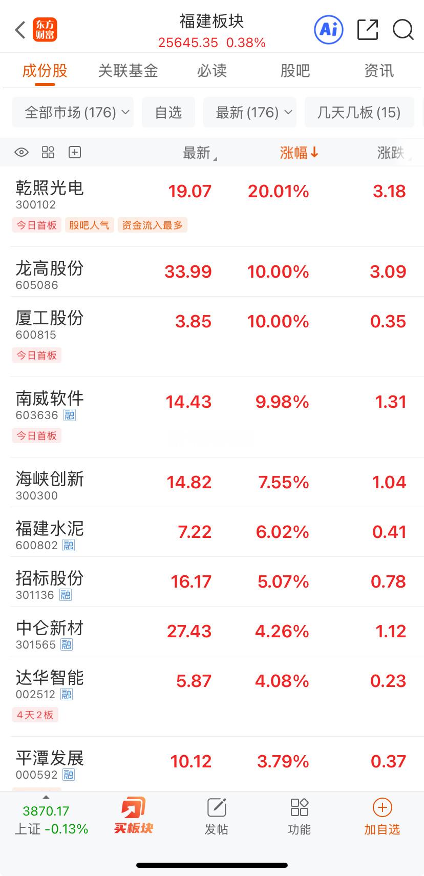市场还是轮动行情,大盘近期大概率在没有大利好的情况下还是弱势震荡为主,谨慎出手谨慎追高。今天看看福建板块的合富中国,平潭发展,海峡创新。股票股票今日看盘