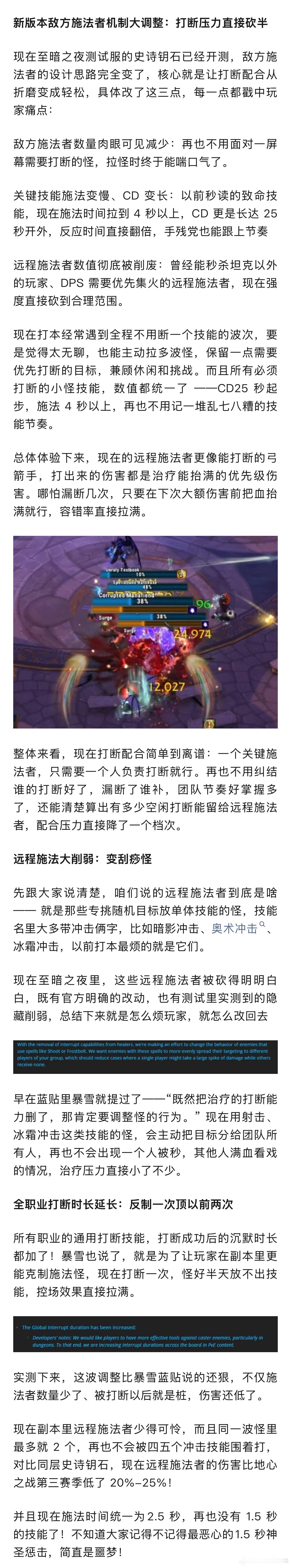 经常打大秘的玩家其实都知道,一个大秘好不好过,除了看队伍的伤害,T的拉怪路线,还有很重要的一个事就是——打断。如果去看高层大秘境的回放就会发现,层数一旦高了,一个漏断就会团灭!因此打断分配绝对是目前大秘境里一个绕不开的话题。然而在12.0里,暴雪针对打断机制来了波全方位革新!以后就算没有打断监控插件、没有伤害计算插件,没有团队配合也能轻松拿捏,再也不用为漏断一个技能就团灭而头疼了!更多内容点网页链接魔兽世界魔兽世界