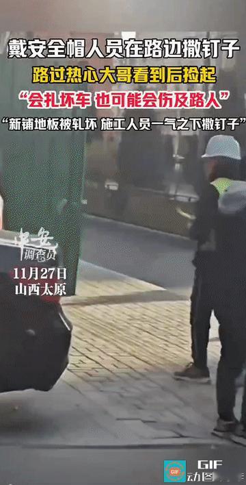 “令人气愤!”山西太原,一大哥经过一施工地时,发现戴安全帽的工作人员正在当街撒钉子,男子不能理解这样的行为,主动弯腰捡拾撒落的螺丝钉,这位大哥坦言:“会扎坏车,也可能会伤及路人!” 来源:【中安在线】 画面中,戴着安全帽的人员在路边撒落螺丝钉,后面随行的人员也当作没看见似的,并没有上前阻止! 随后这位路过的大哥经过此处时,默默蹲下,将这些可能伤人的金属颗粒一一捡起! 当被问及为何这样做时,这位热心大哥直言不讳:“会扎坏车,也可能会伤及路人。” 简单的一句话,道出了他对公共安全的担忧! 有目击者透露,撒螺丝的原因是因为新铺路面被车轧坏! 这种行为看似是在维护受损设施的无奈之举,实则已经涉嫌危害公共安全! 他们这种不管不顾直接在路上撒钉子的行为就像是在发泄一样,可他们在做出如此举动之时,可否想过,这会给多少无辜的人带来安全隐患? 不管是车子还是过路人,更危险的是如果有好动的小孩子经过,因为他们并没有大人的警觉,不小心伤到了,又该牵出多少没必要的纠纷? 其实,如果真是为了维护受损设施不再次受到损坏,可以有很多方式方法——拉警戒线,设置路障等,都比这种直接在大街上撒钉子的方法好,也更安全,更警醒! 那些撒在路边的螺丝钉,无论出于何种理由,都成了对市民道德的考验。而那位默默弯腰的大哥,用最朴素的行动给出了答案!