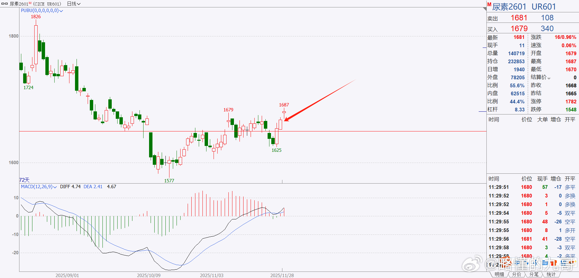 期货 尿素目前已经转多了!尿素连续两天收出大阳线,非常好的走势!看这次尿素能给带来多大惊喜了!尿素