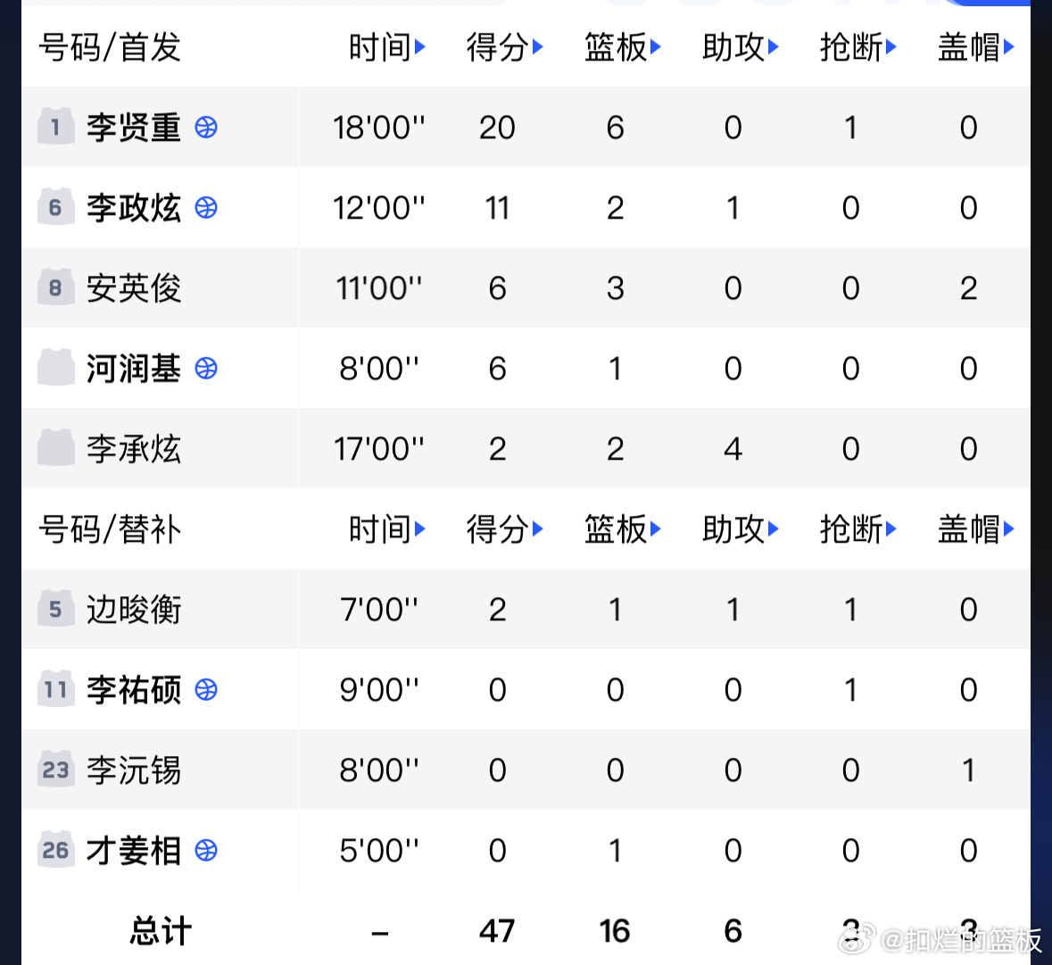 半场结束!中国男篮34-47暂时落后!韩国球员李贤重表现出色拿下20分!投篮9中7,三分8中6!李贤重单节4记三分