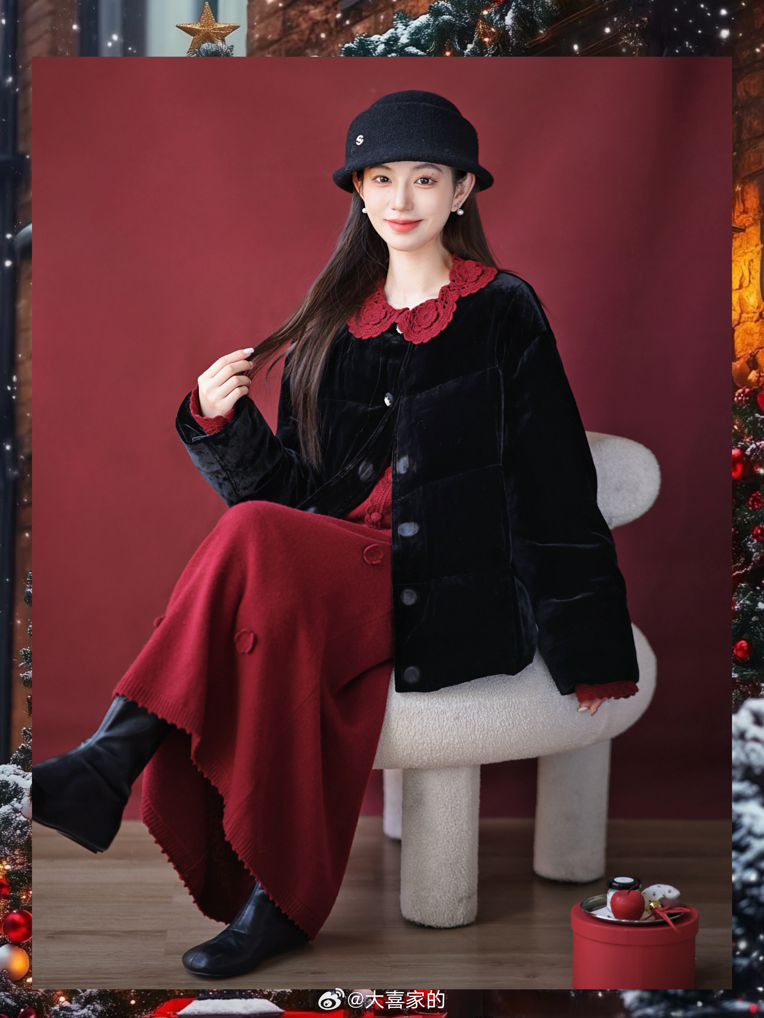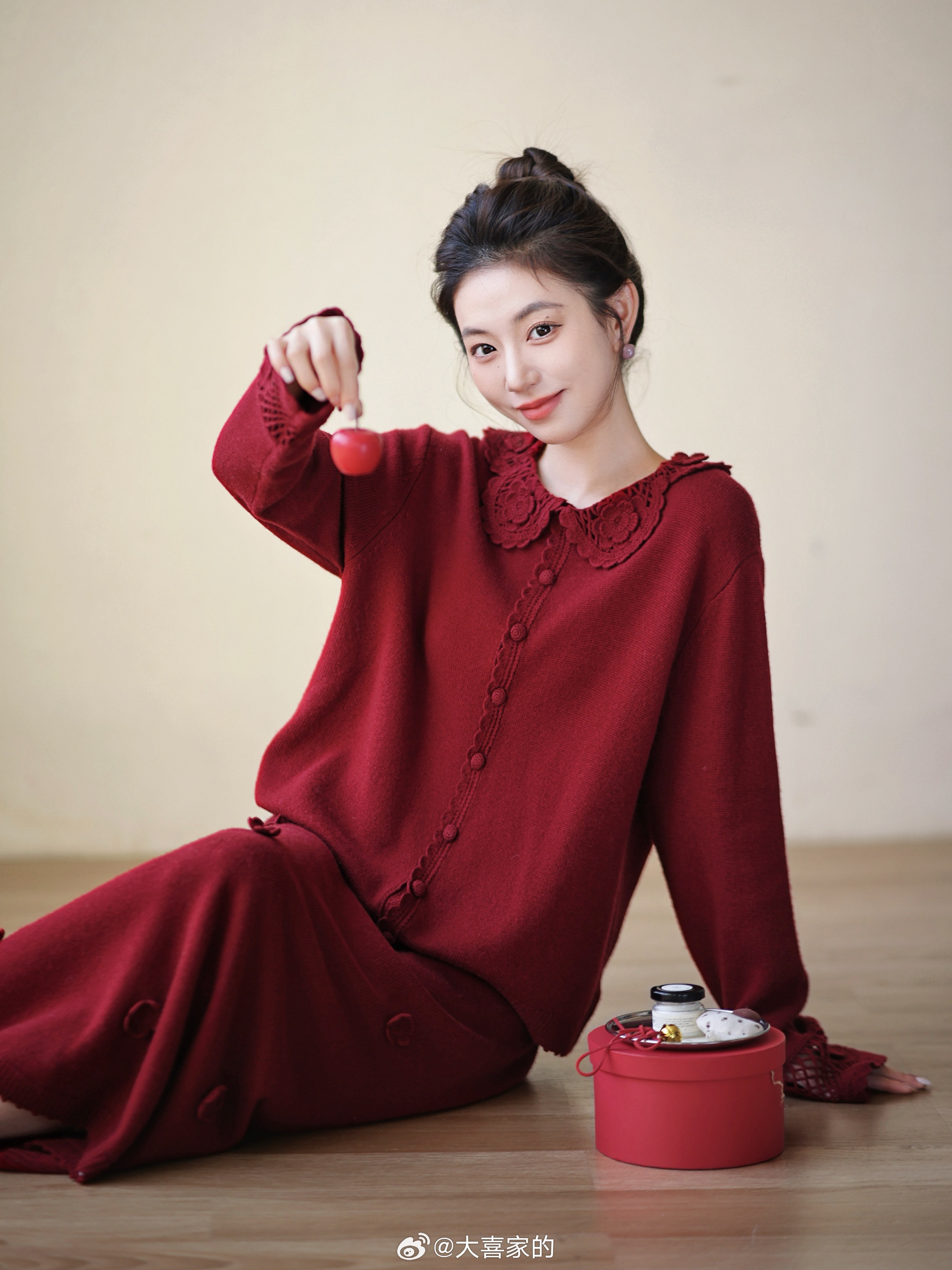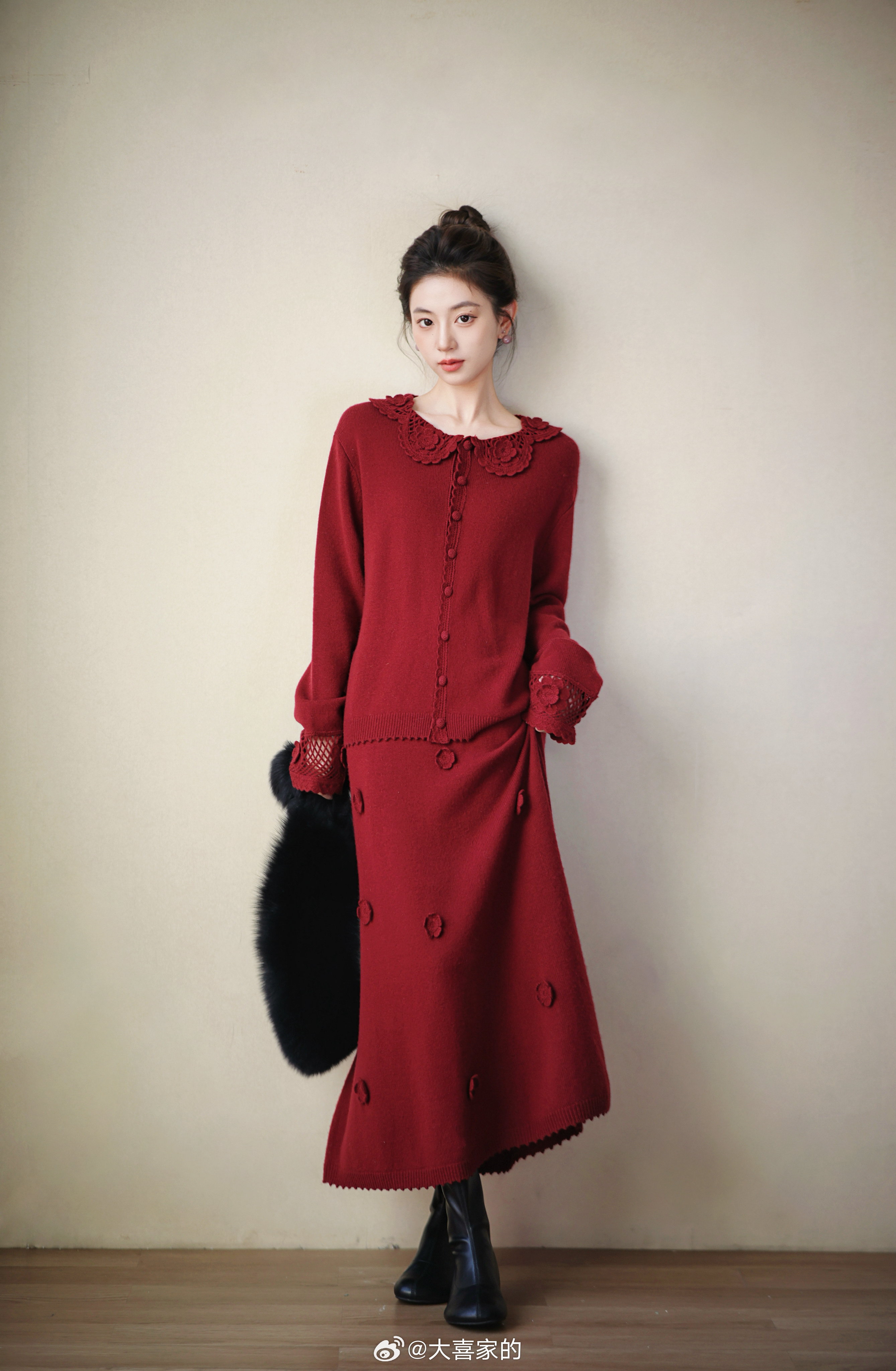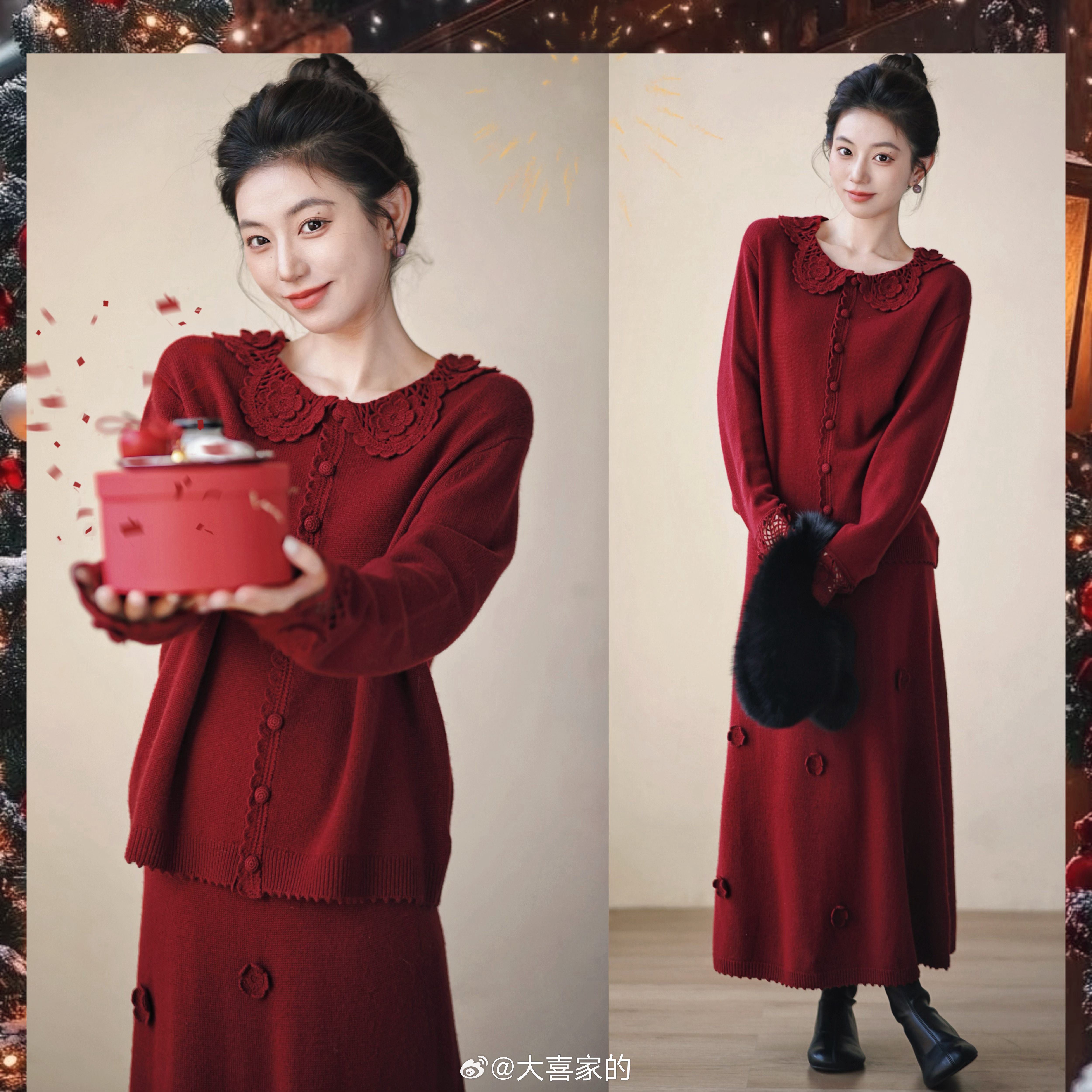 嘿嘿~是本粒提前预定的节日红!!!羊毛*羊绒纱线软得很针织开衫+半裙套装再来
