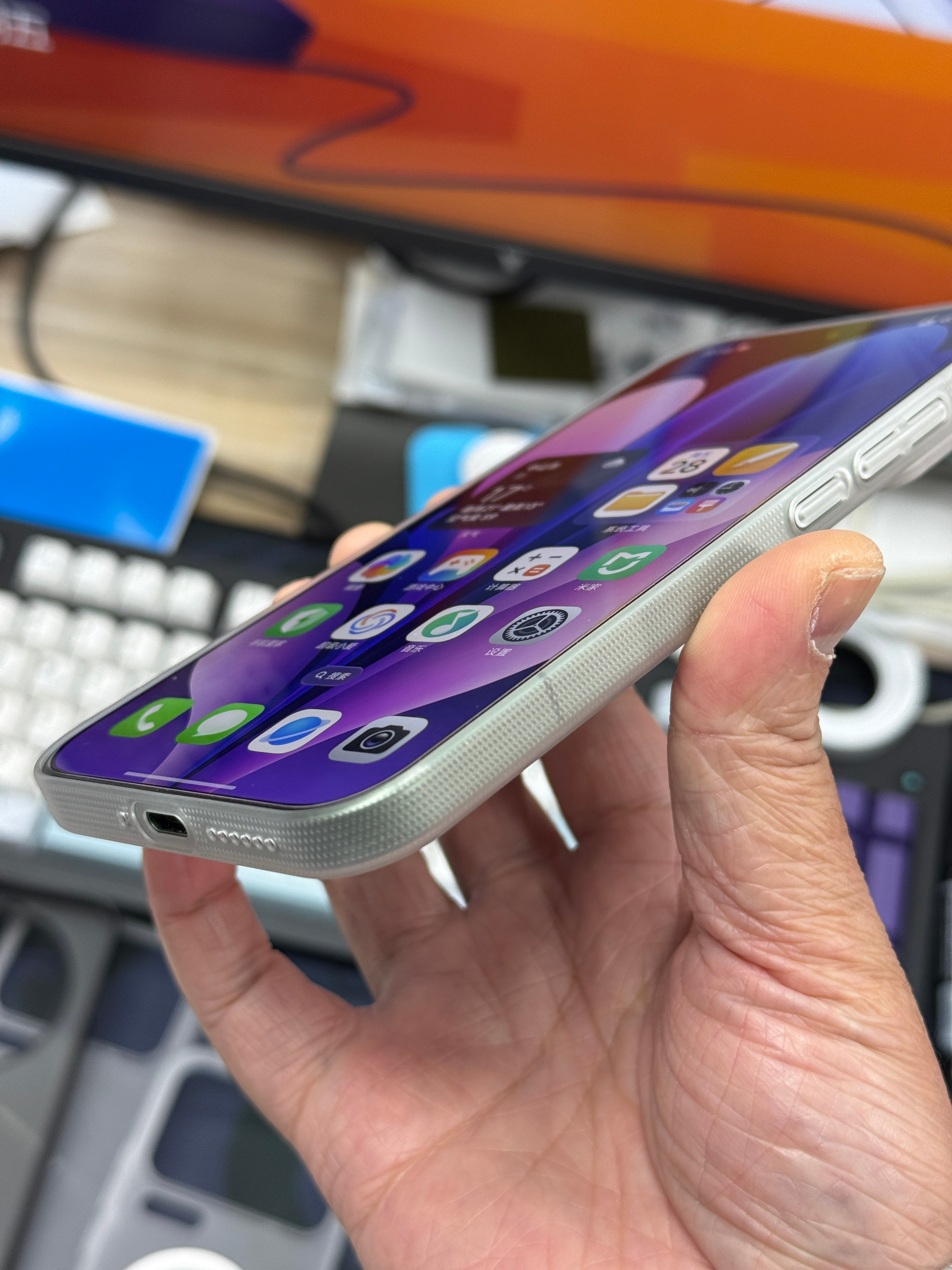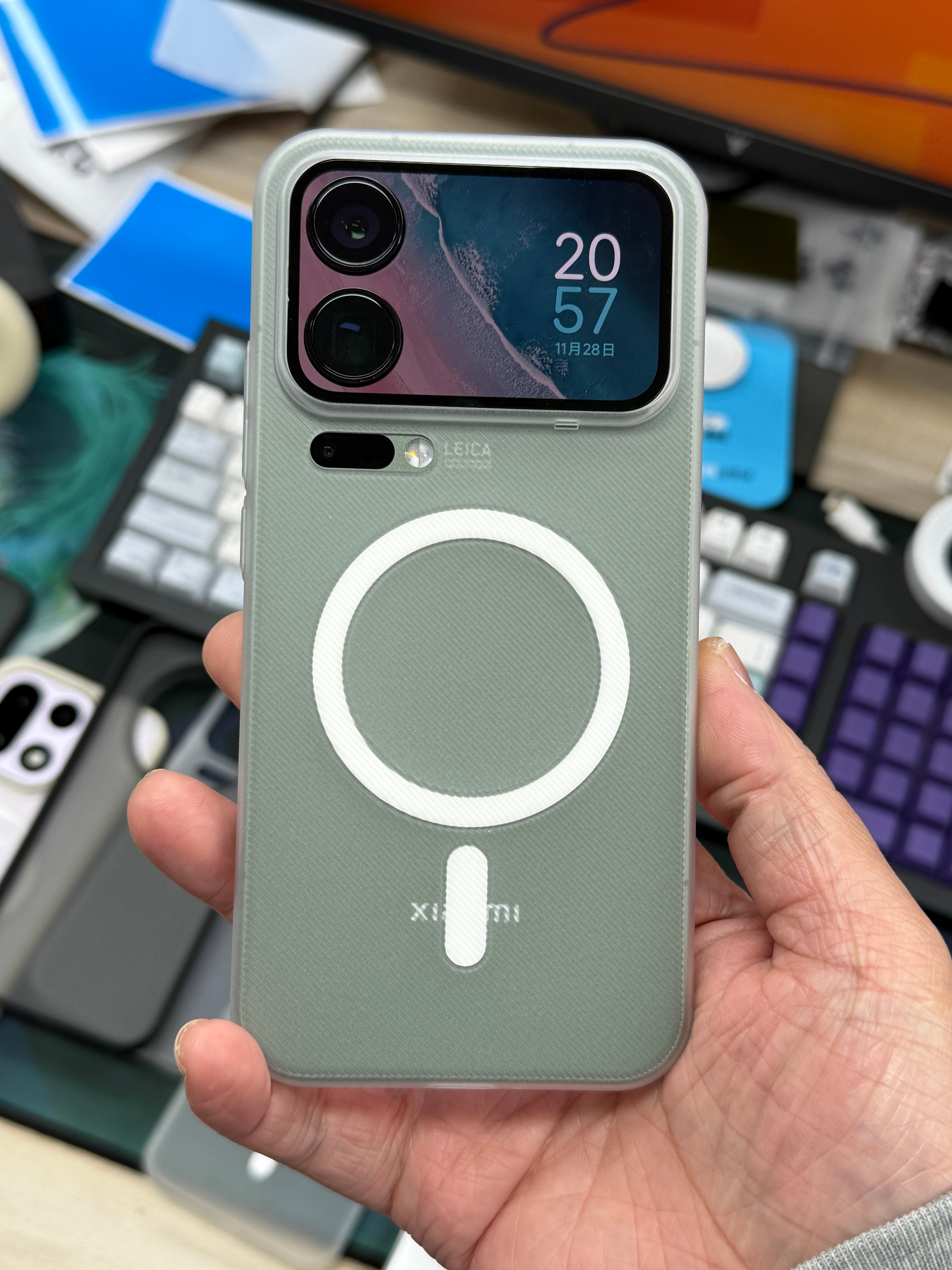 小米17ProMax 超薄 pc 磁吸的重量预计在17克左右贴上我们的 AR 玻璃膜,边框与膜齐平。因为没包金属边,完全不用担心会顶膜