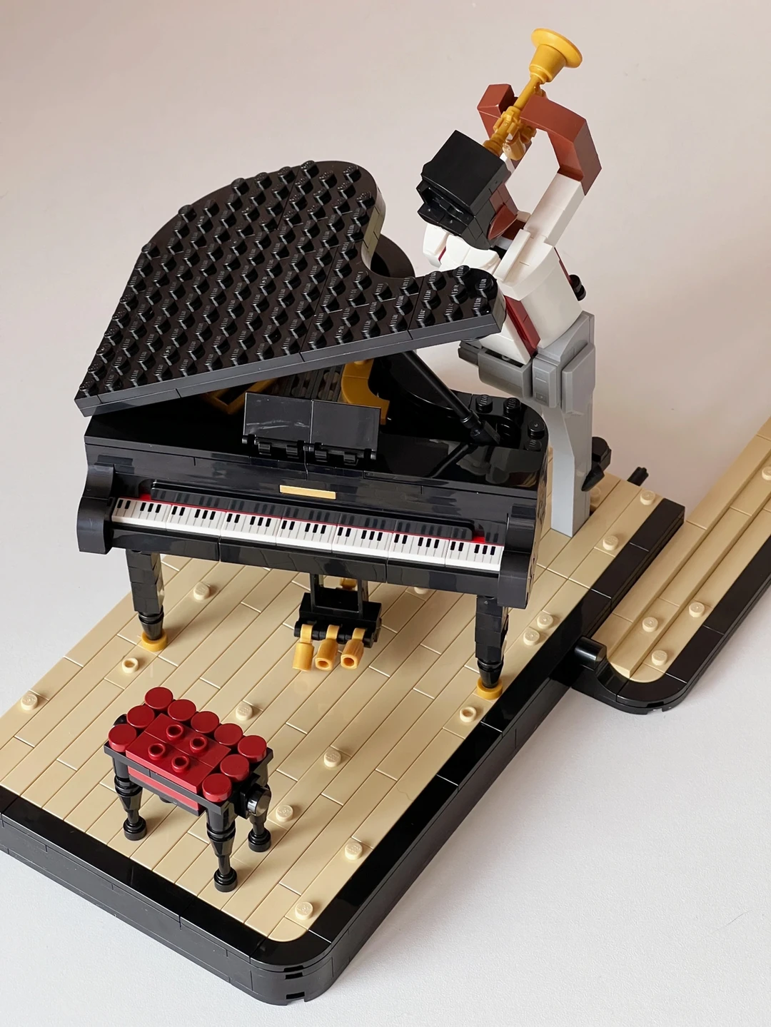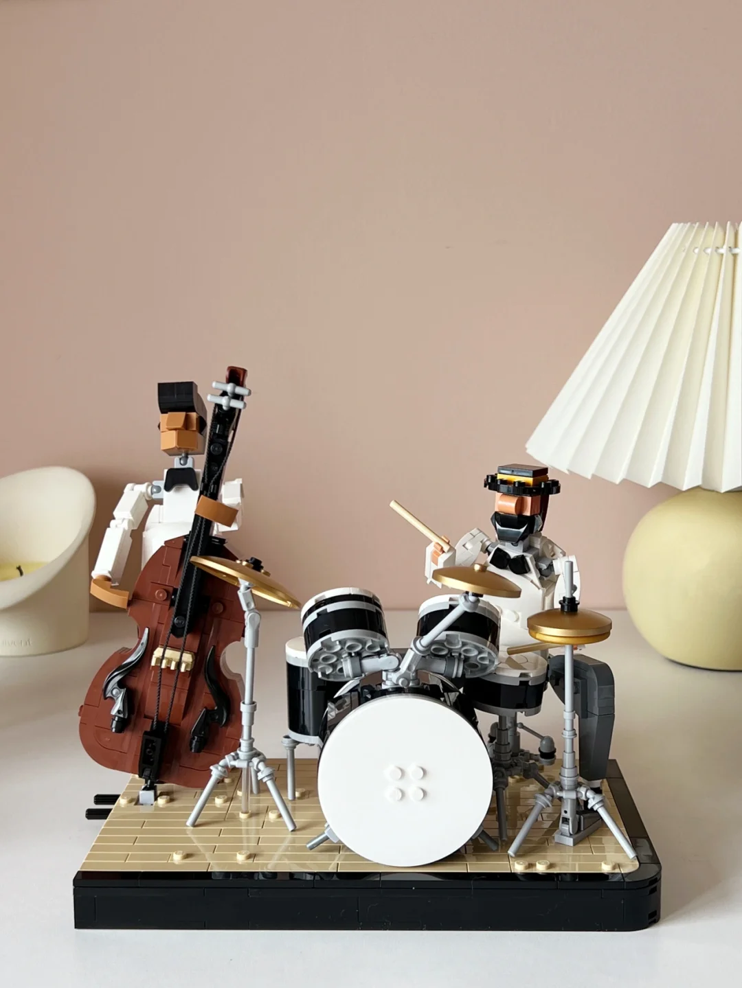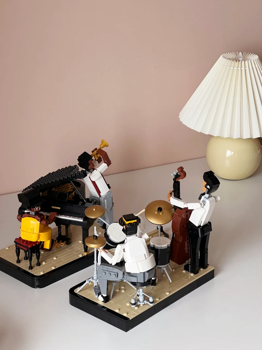 产品分为四个部分,由四个音乐家分别搭配三角钢琴、小号🎺、低音提琴、爵士鼓组成,完成后呈现出一个专业的爵士乐队在舞台上的精彩演出,爵士氛围一秒拉满。拼搭的过程,可以尽情享受着乐高及音乐带来的生活治愈感。