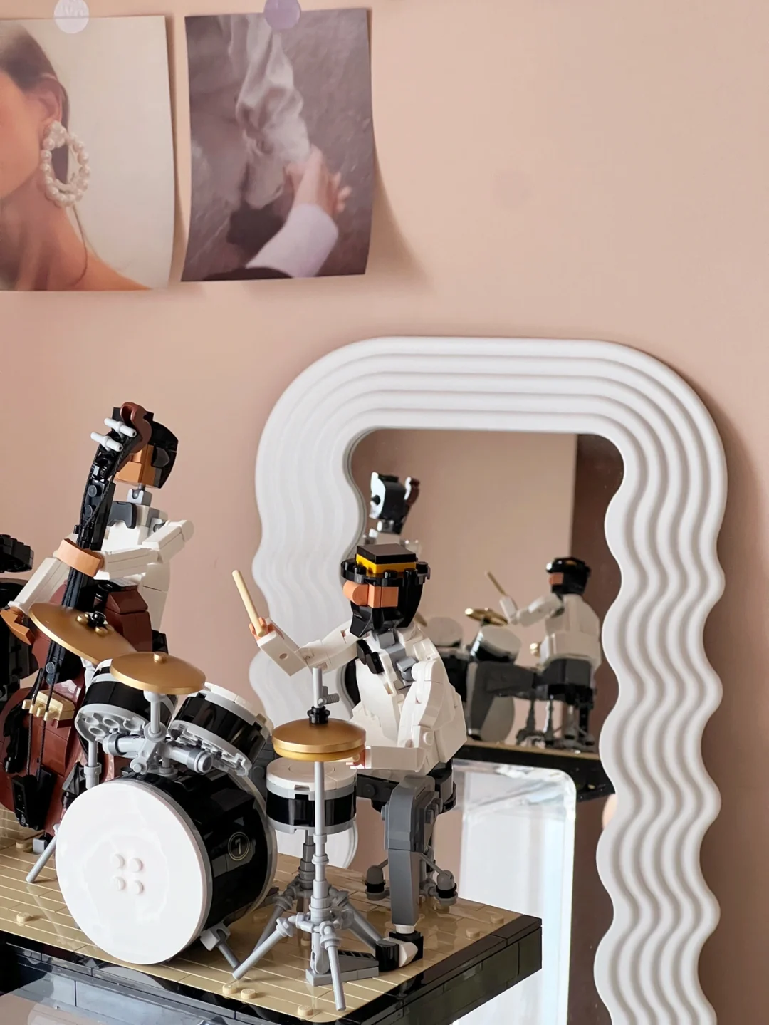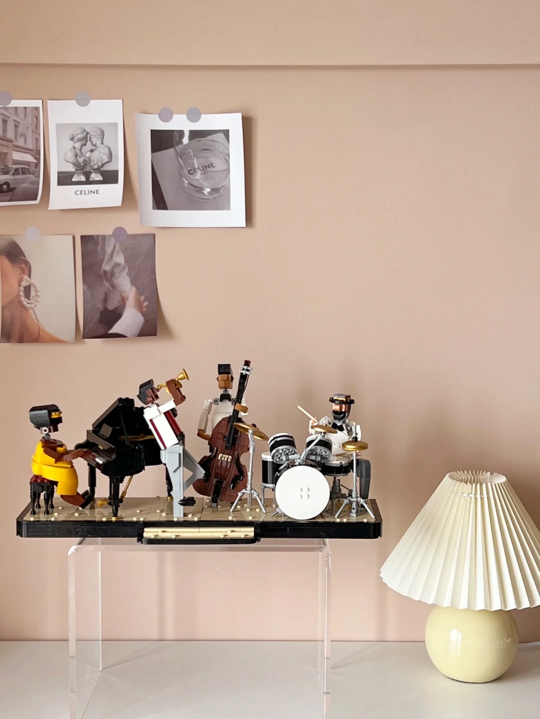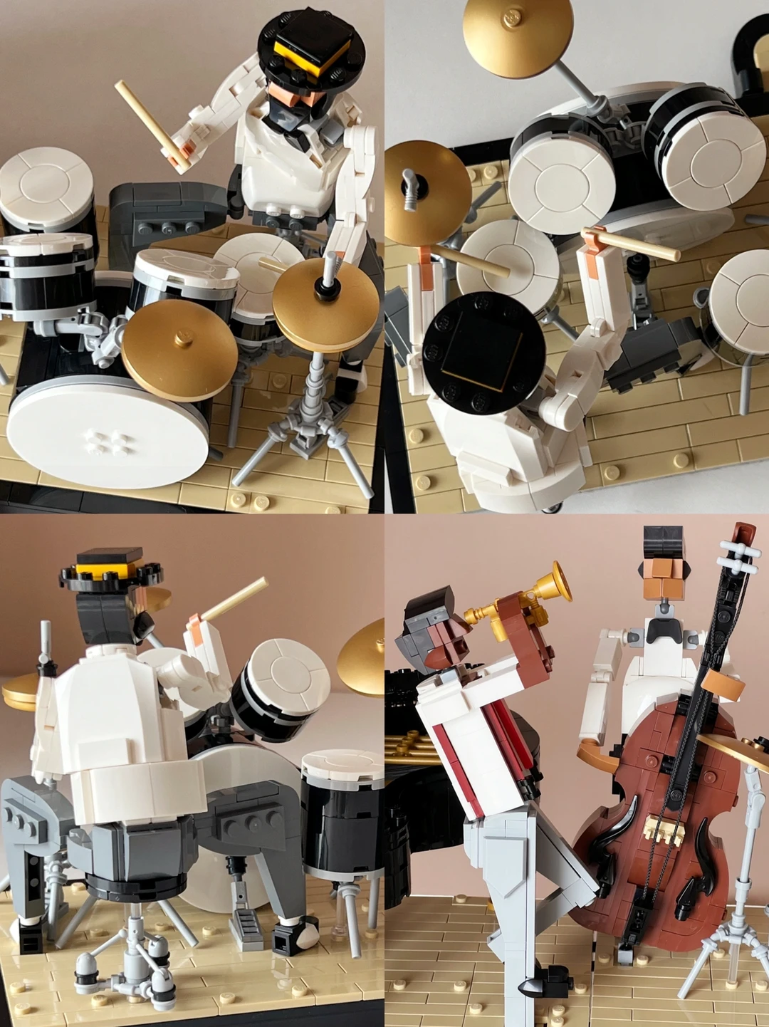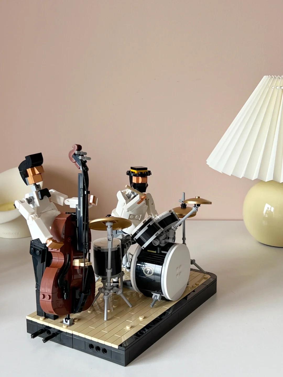 产品分为四个部分,由四个音乐家分别搭配三角钢琴、小号🎺、低音提琴、爵士鼓组成,完成后呈现出一个专业的爵士乐队在舞台上的精彩演出,爵士氛围一秒拉满。拼搭的过程,可以尽情享受着乐高及音乐带来的生活治愈感。