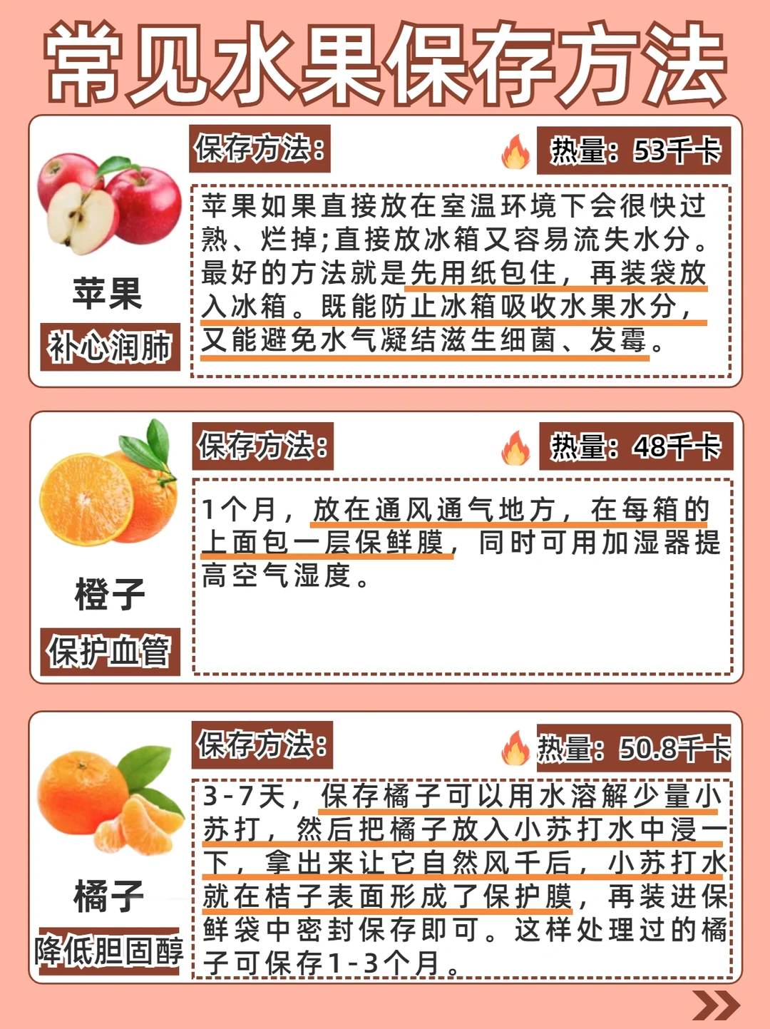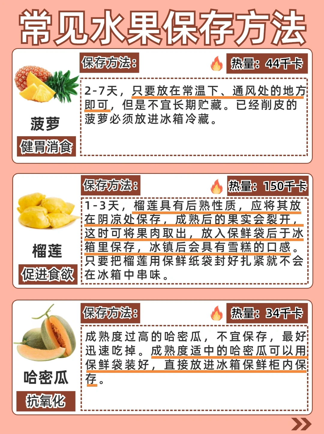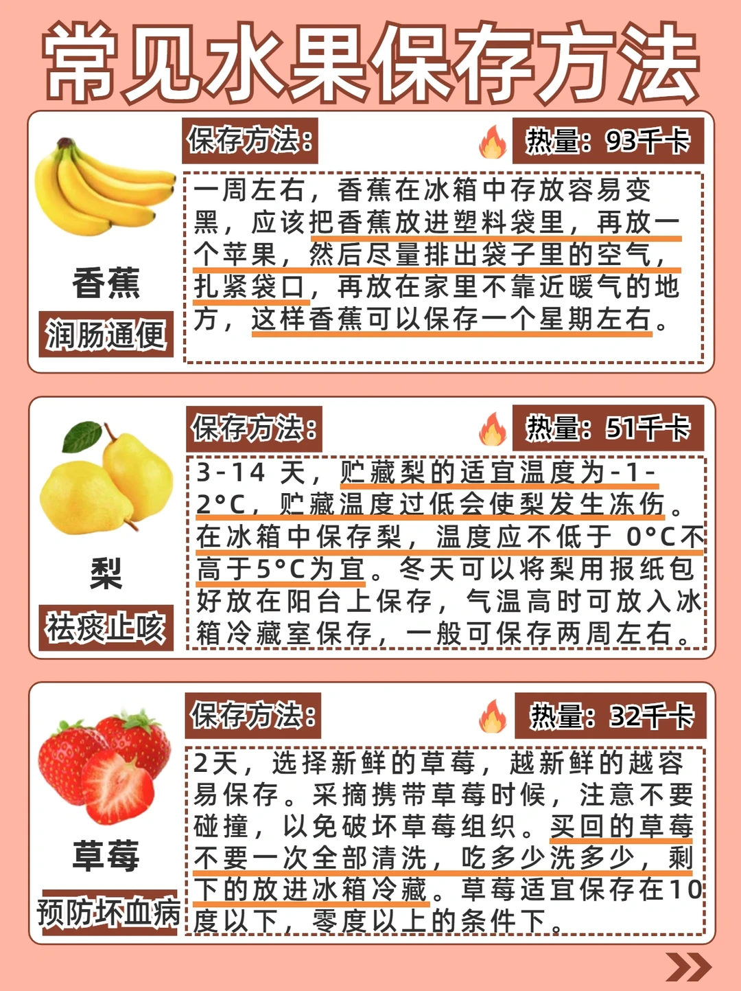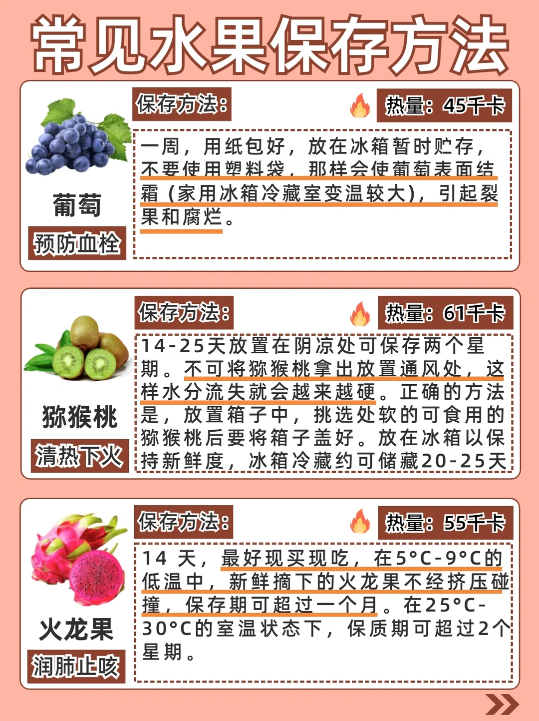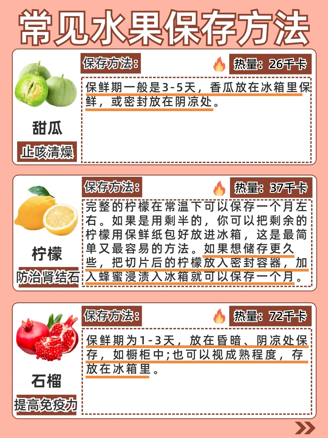 🥝水果中含有丰富的维生素C、维生素E和其它营养物质,适量吃水果能够增强免疫力,促消化,水果中含有纤维素和水分可以增加饱腹感,对于减肥减脂有一定的帮助,那么水果怎么保存才能更久的保鲜呢!