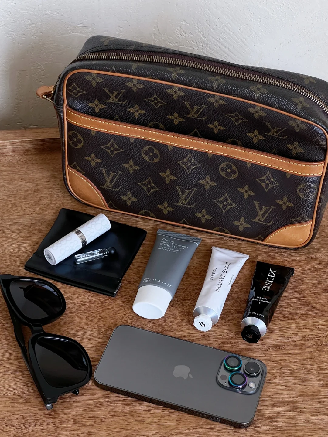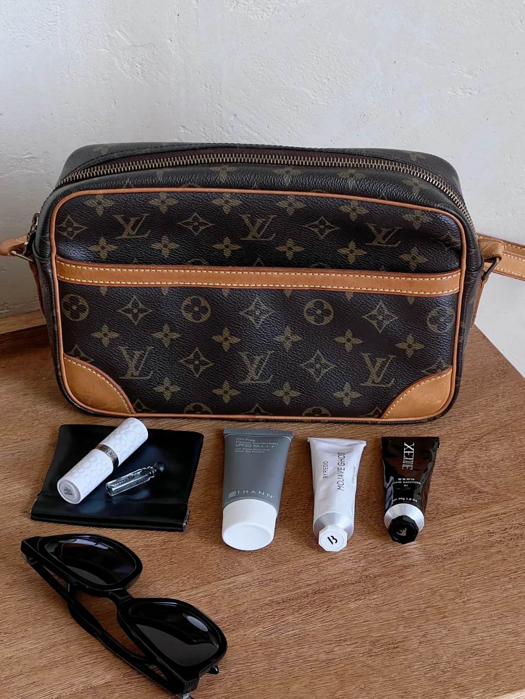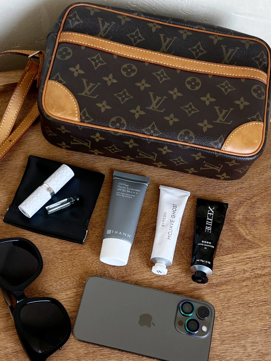 日常出行的翻包记。 what's in my bag❓ ☀ 🏷 LV中古相机包 一直喜欢老花,相机包其实挺好用,大小合适,放个微单妥妥的~ 🏷 THANN防晒霜 🏷 Byredo 护手霜 🏷 Elizabeth Arden 护唇膏 🏷 Gentle Monster 墨镜 🏷 iphone13pro 苹果手机 上周抽空去换了摄像头模块,之前有灰尘跑进镜头内,用长焦镜头拍固定位置会有一个黄豆大的灰圈,赶在保修期间去apple更换了摄像头,现场1个半小时可取。 🏷便携香水试用装