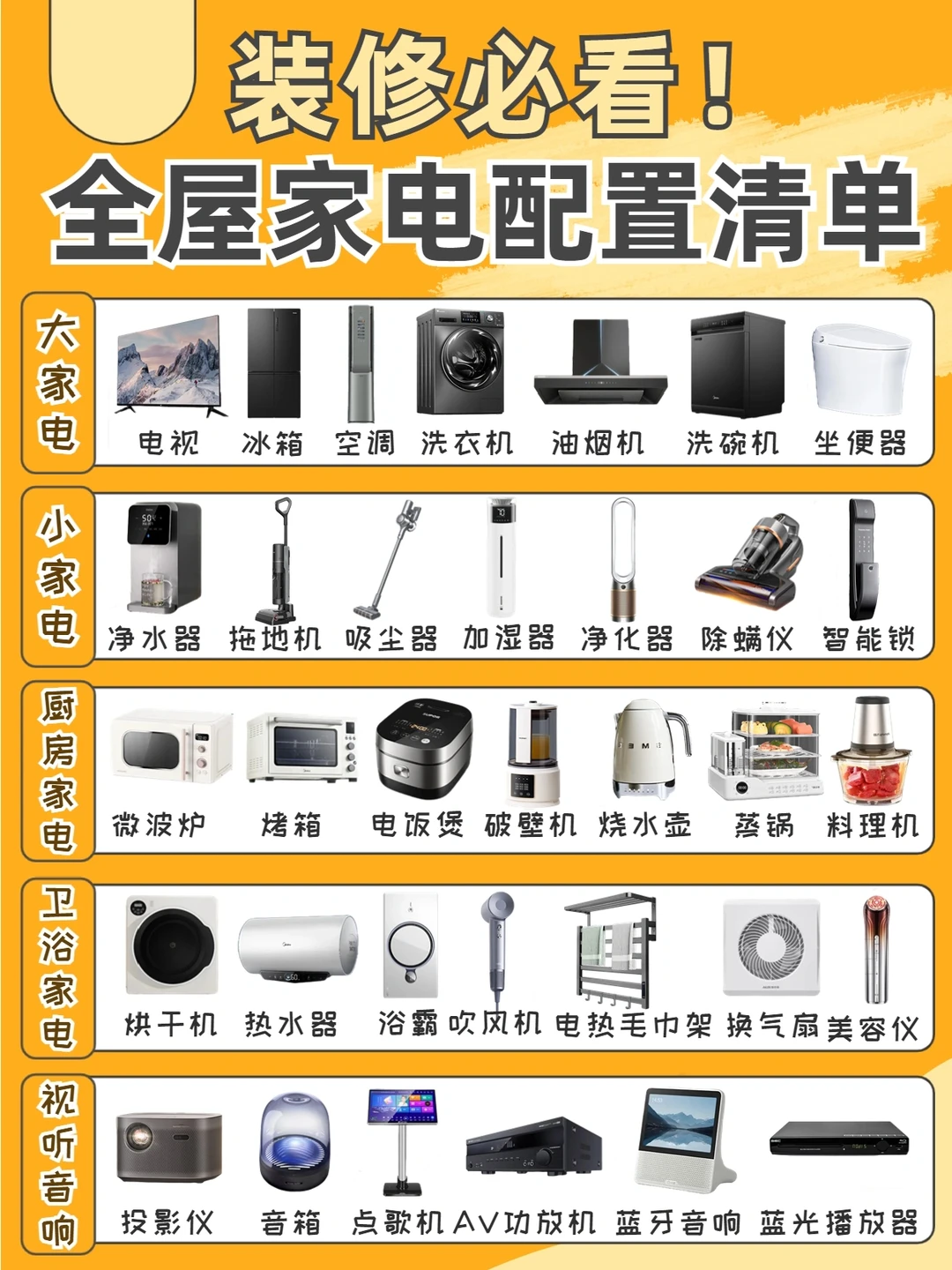 [吧唧R]欢迎来到刘百万的频道~ · [石化R]装修家电不知道该买什么❓看这一篇就够了!这里已经给大家整理好了新家家电配置清单和家具软装清单照着买就行了。 · 🏠新家家电配置清单 🔸大家电 🔸小家电 🔸智能家电 🔸厨房大家电 🔸厨房小家电 🔸护理电器 🔸家具软装清单 🔸家电挑选指南 详细👀图文👆 · [失望R]经历过装修踩坑,在购买家电上还是挺顺利的,希望带大家一起避坑,有需要的朋友们可以参考~