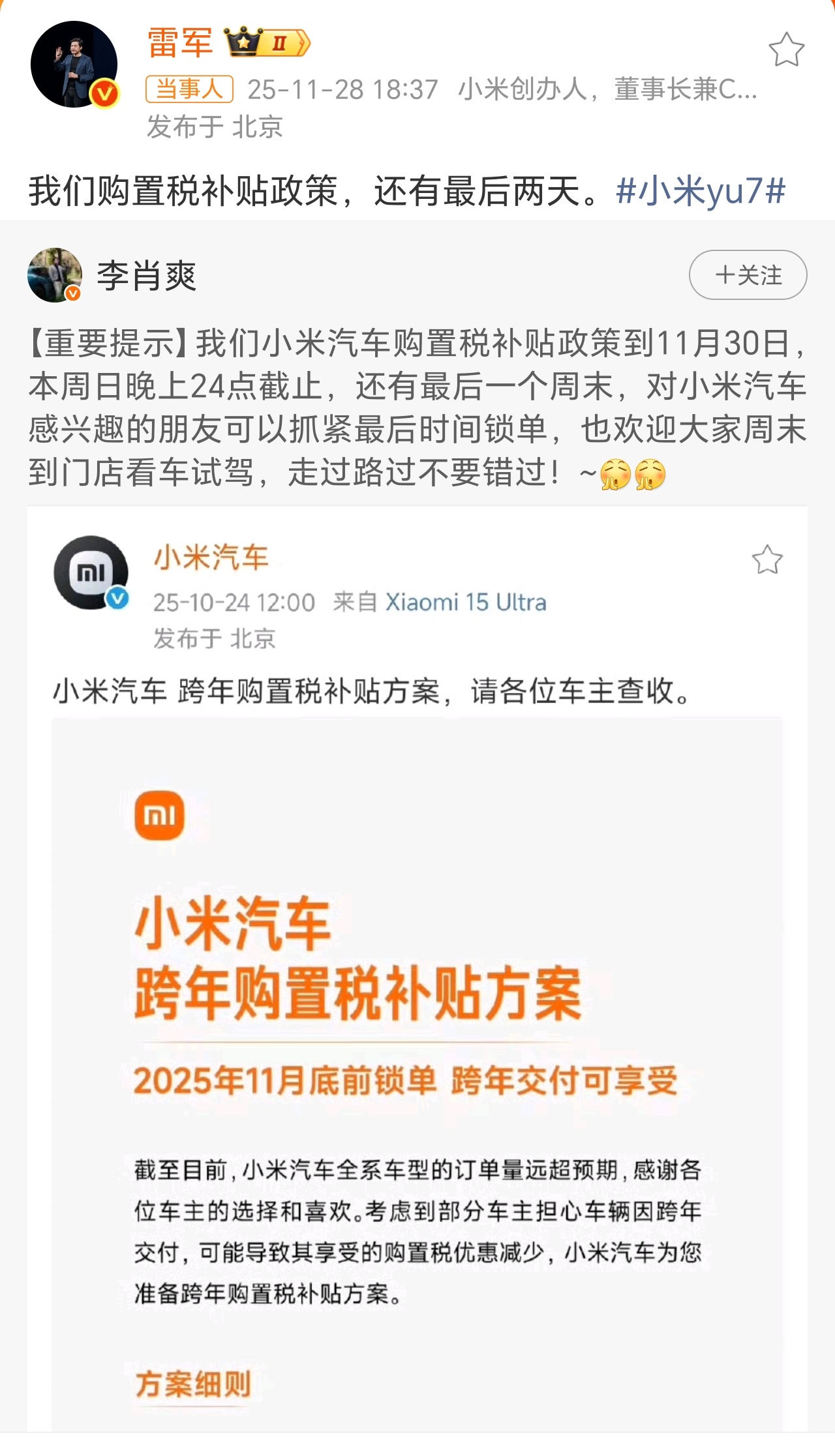 雷军发布小米购置税补贴重要提示雷军卖力推荐大家下单,米粉们挤破脑袋抢购,可最近为啥有人发了不少交付中心的车子都落灰很久了,哪个环节出了岔子?不对,肯定是拍摄者带节奏尬黑的,说不定视频就是假的、AI的……