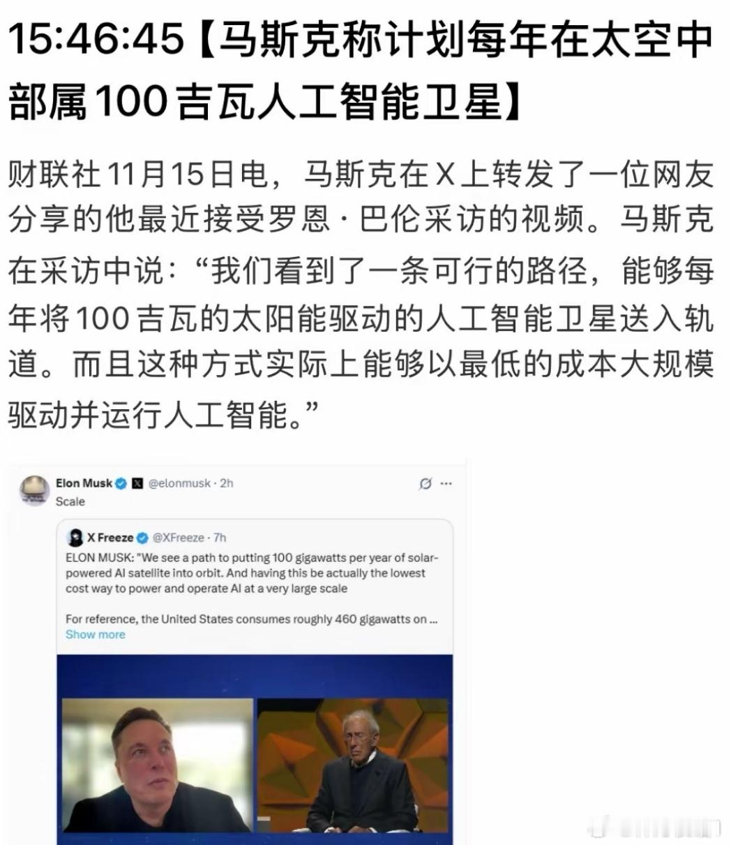 马斯克太空算力是画饼吗?中国三体星座早已实装,但致命伤仍在!马斯克最近不是说要搞太空算力嘛,把AI计算卡做成卫星发上天,说这样既能狂用太阳能,还不用地面那种麻烦的液冷散热,算力成本能降几十倍,媒体和殖人一顿狂吹。其实这个想法咱们中国也在做,根本不是什么全新概念。今年5月咱们就发射了全球首个太空计算卫星星座“三体计算星座”,一颗卫星算力顶744万亿次每秒,已经实现在轨计算了。中美都有“gw星座计划”,中国规划的是在未来十年内在太空分批次规模部署三期算力星座,每一期突破一些技术瓶颈,那这事儿到底靠不靠谱?我们来看看:🌟 太空算力确实有它的香:· 太阳能在太空几乎是“免费”的,太阳能强度可达地面的5倍以上,发电效率高达95%,还不受天气影响;· 太空温度低,真空环境,散热比在地球上简单多了,不用背着一大套冷却系统跑;· 数据不用全部传回地球了,直接在太空算好,只把最有用的结果发回来,省时又省力。💥 但现实问题挑战也是一大堆:1. 散热没那么简单:太空没空气,热量传不出去,还得靠热管导出来。而且太空轨道环境温度剧烈变化(-65°C至125°C),热管理与材料耐受性极具挑战,芯片很容易“中暑”或者“冻僵”。2,阴影区供电难题:卫星飞到地球背面阴影区时就没了阳光,算力卫星势必比普通其它卫星更耗电,更依赖储能系统。电池的容量、寿命与稳定性是持续运行的关键瓶颈。3. 太空辐射太要命:宇宙射线分分钟让芯片出错甚至报废,得做特别冗余加固,但这又贵又影响性能。4. 发射成本还是太高:就算能回收火箭,每公斤8000美元的发射费还是让人肉疼,得再降几十倍才行。5. 组网和维护超复杂:那么多卫星要在天上自己组网、自己运行,出问题了还没法派人去修。6. 天上也要“抢地盘”了:各国都在规划自己的算力星座,以后太空轨道和频谱肯定越来越挤。太空算力的实现,远不止是“把服务器搬上天”那么简单,它背后是材料科学、芯片设计、航天工程与能源系统的综合跨越。然而,无论前路如何艰难,人类必将在星辰大海的宇宙中点亮智能的灯塔。华为科技黑科技人工智能太空马斯克 北京