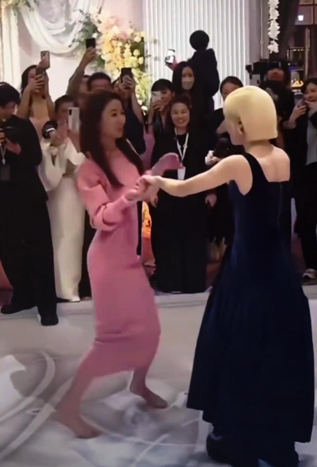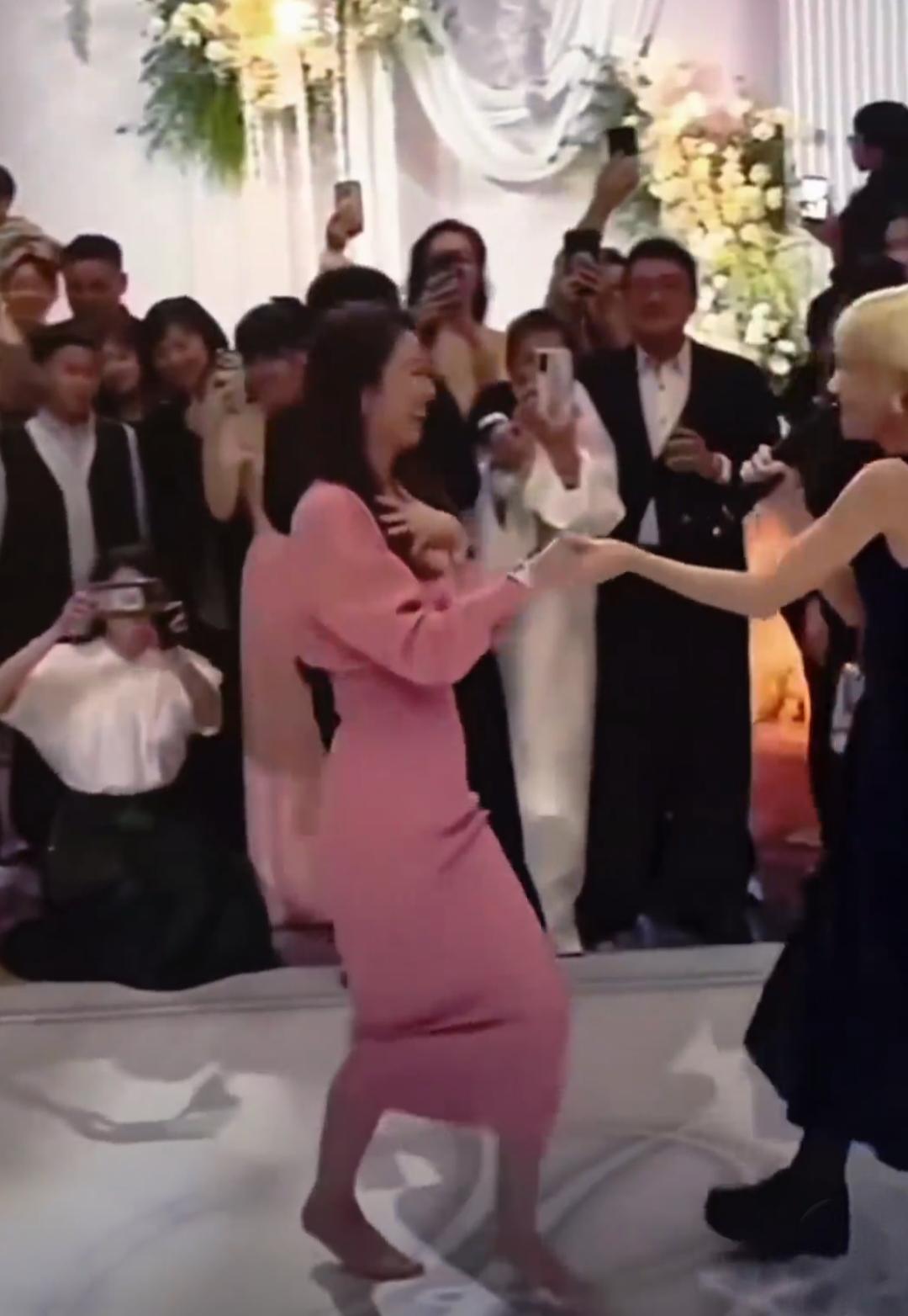 11月28日晚上,林心如和霍建华一起参加圈内好友婚礼!49岁的林心如穿着一袭粉红裙子,身材苗条,状态神勇! 在婚礼仪式后的派对上,林心如被主持人邀请上台跳舞,她光着脚,摆动着身躯,整个人看起来好兴奋! 霍建华相对来说要严肃很多,几乎一副表情贯穿全场,还是一副老干部的作风!