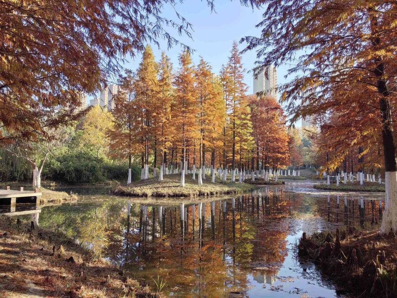 落羽杉用红棕的笔触, 在天地间画下温柔的句点。 是深秋,也是初冬。 阳光漏过红杉林, 连落叶都成了金色的诗。 这是冬天里温柔的焦糖色。 热爱是生活的解药, 用喜欢的事, 填满生活就刚刚好。 密林里疏朗天光, 水面浮起斑驳星点。 静谧笼罩之下, 时间的流淌声清晰可闻。 愿我们在自己喜欢的生活节奏里,保持热爱, 相信所有的好日子都在热爱里…… 就像眼前这不期而遇的美丽, 宛如一幅绚丽的油画。 每一片叶子都在诉说着季节的故事。 带定位晒今日生活 我的今日状态:😁轻松愉快 我这里的天气:☀️晴天