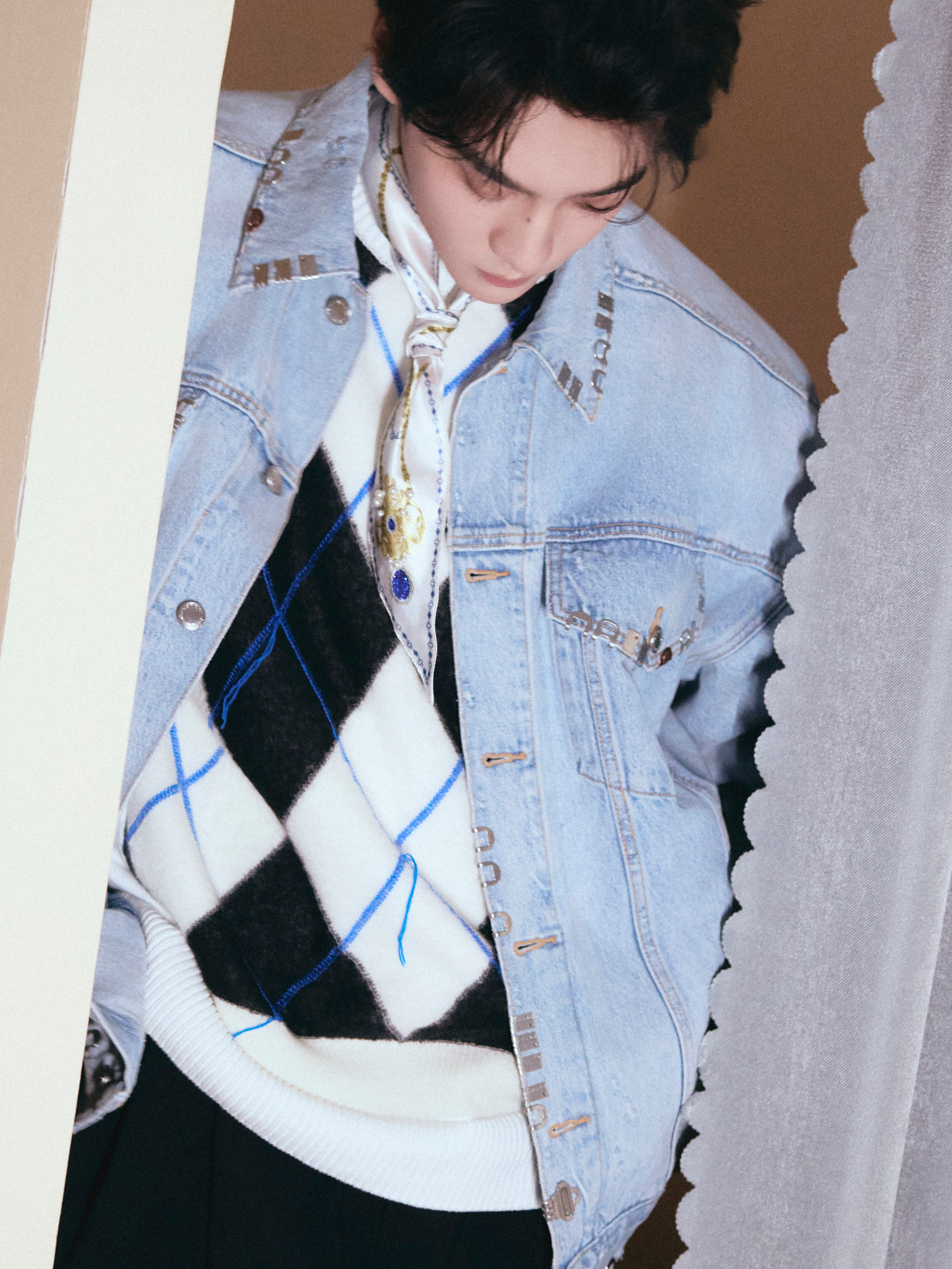 田栩宁|AYOR TOYS品牌直播AYOR TOYS全球品牌代言人田栩宁亮相品牌直播活动,他身着Alexander Wang蓝色牛仔机车夹克,内搭Givenchy黑白菱格纹针织衫,于简约黑白与不羁牛仔之间,调和出独有的松弛与酷感~田栩宁直播