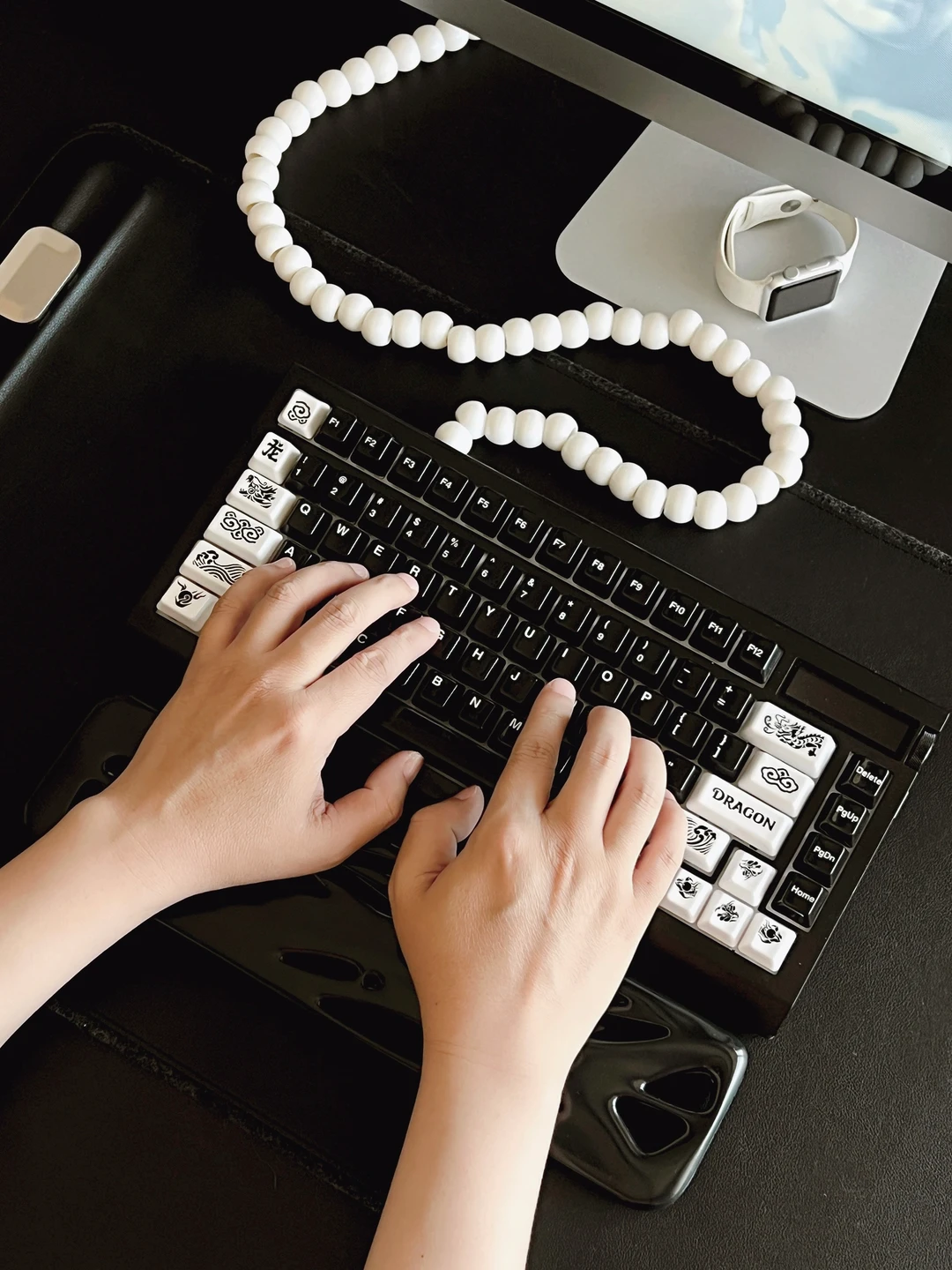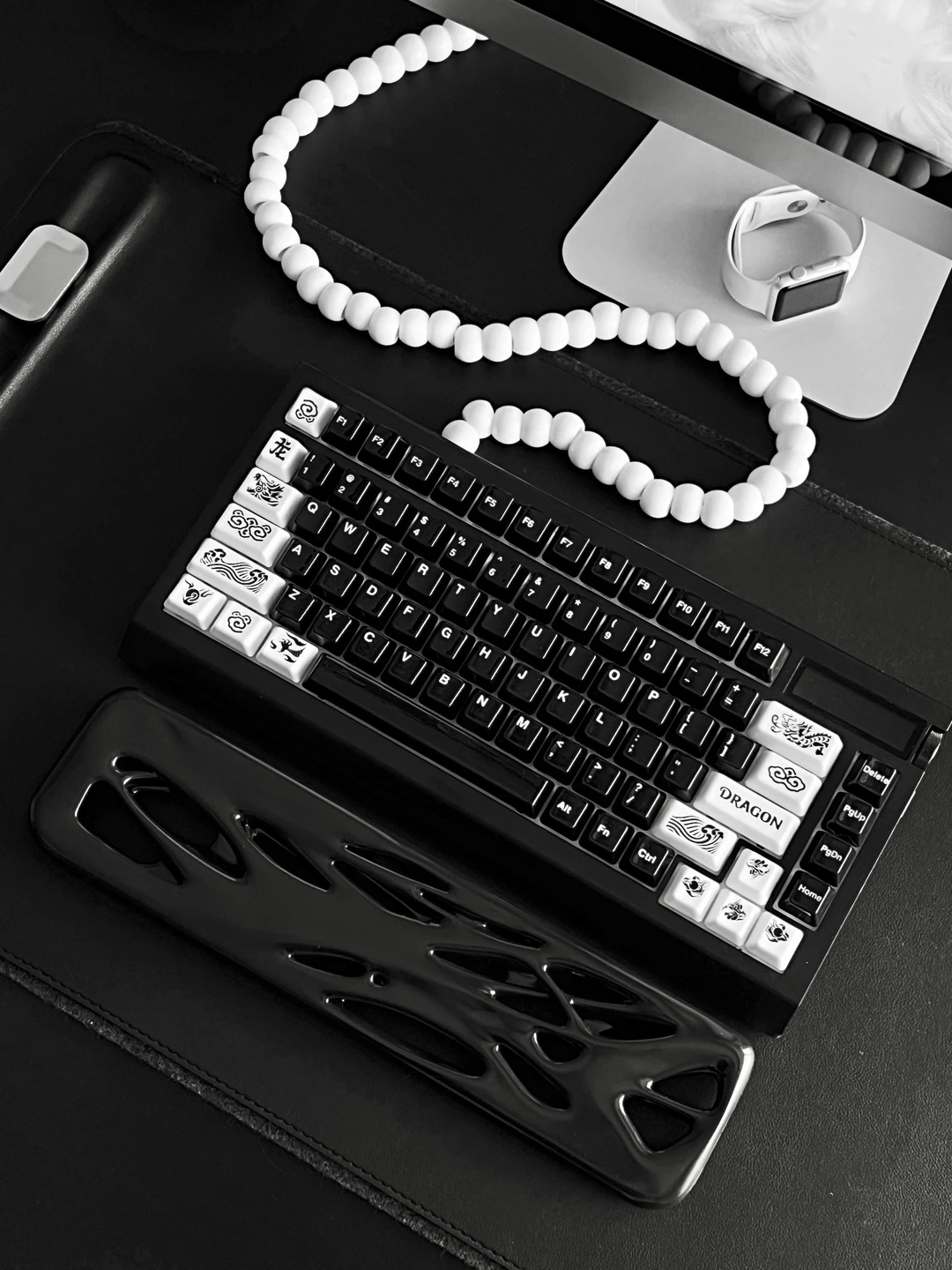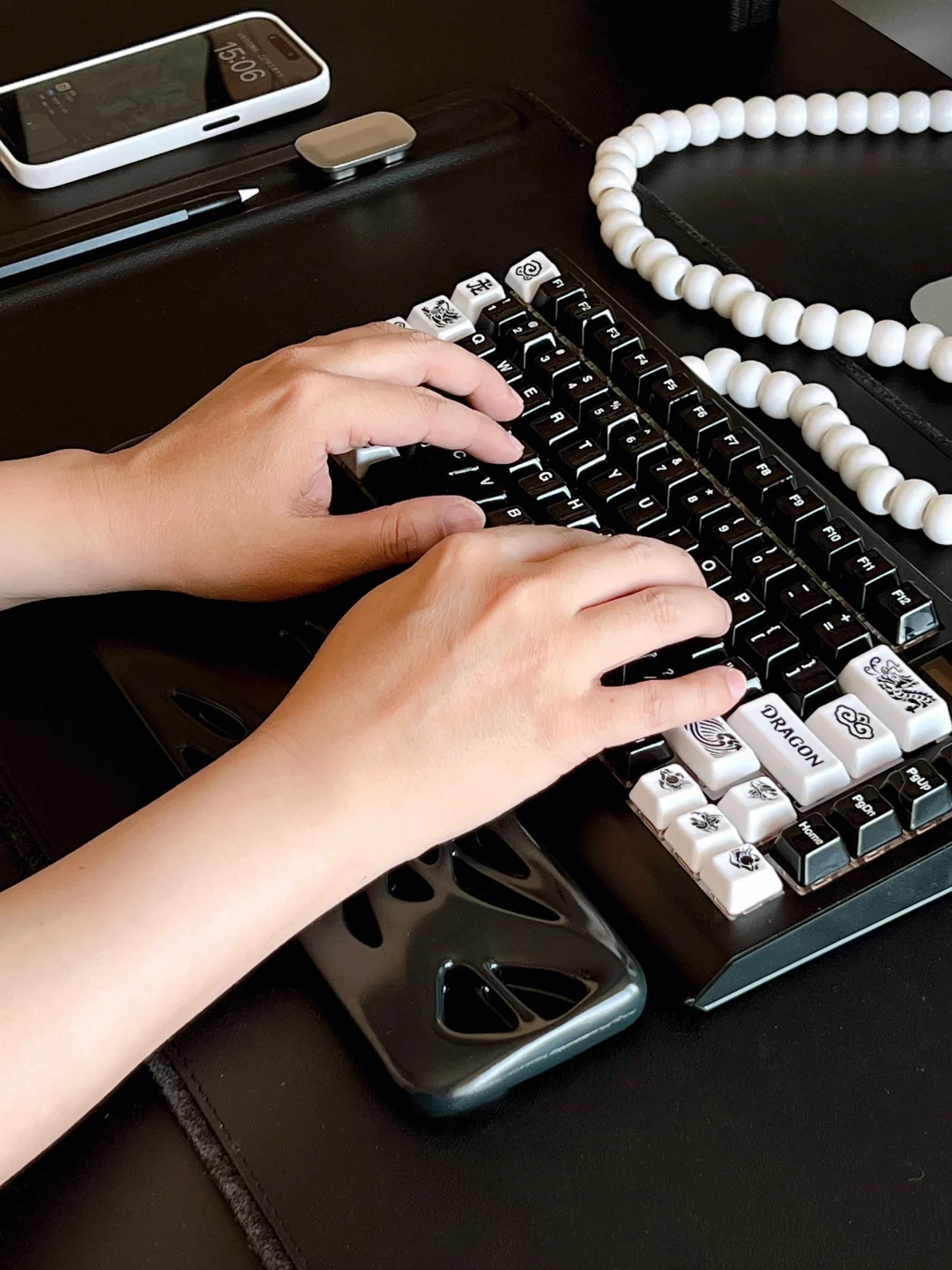 我发现黑白配桌搭真的百看不厌 陶瓷键帽+陶瓷手托,这也太有艺术感了吧。