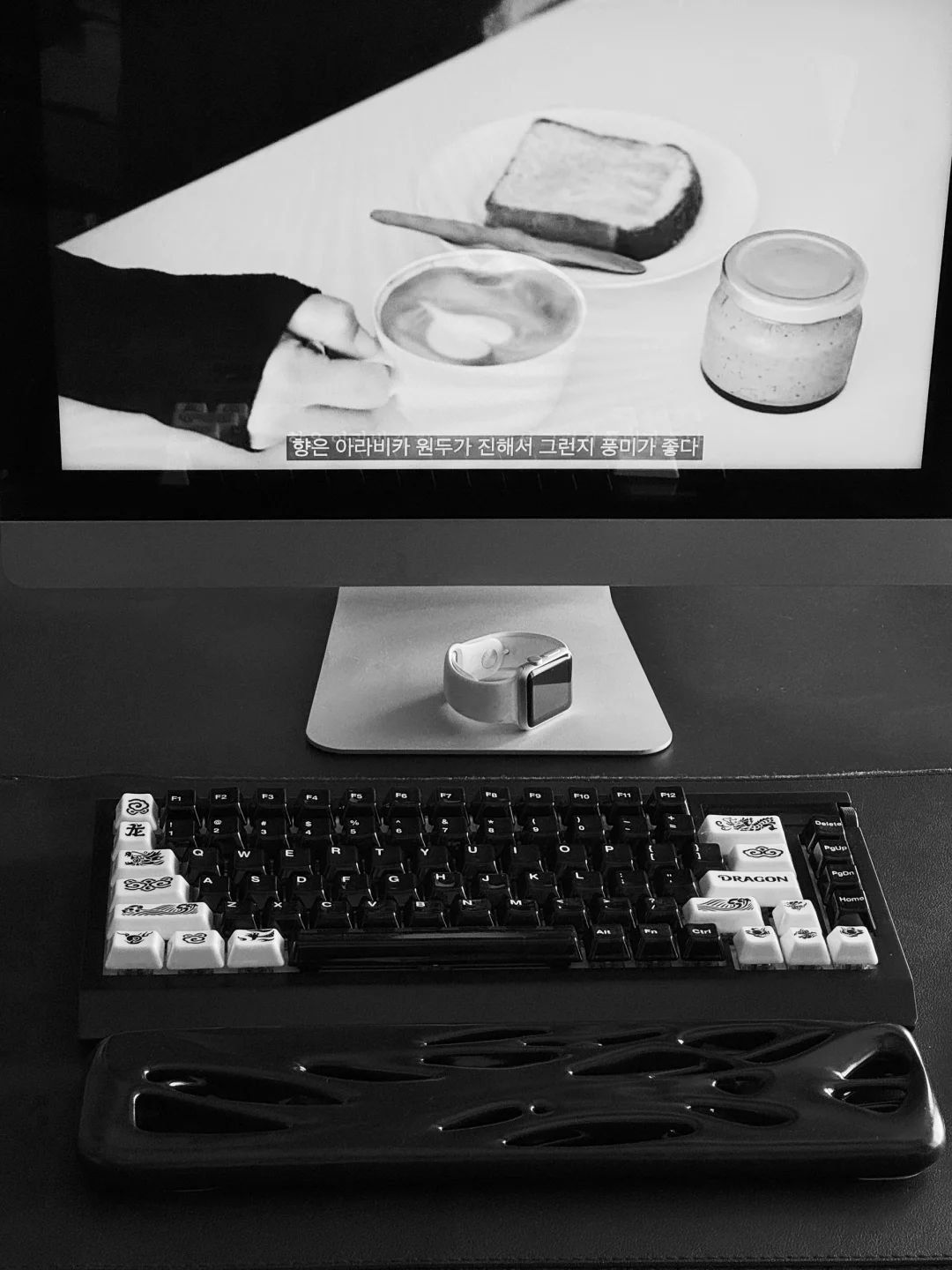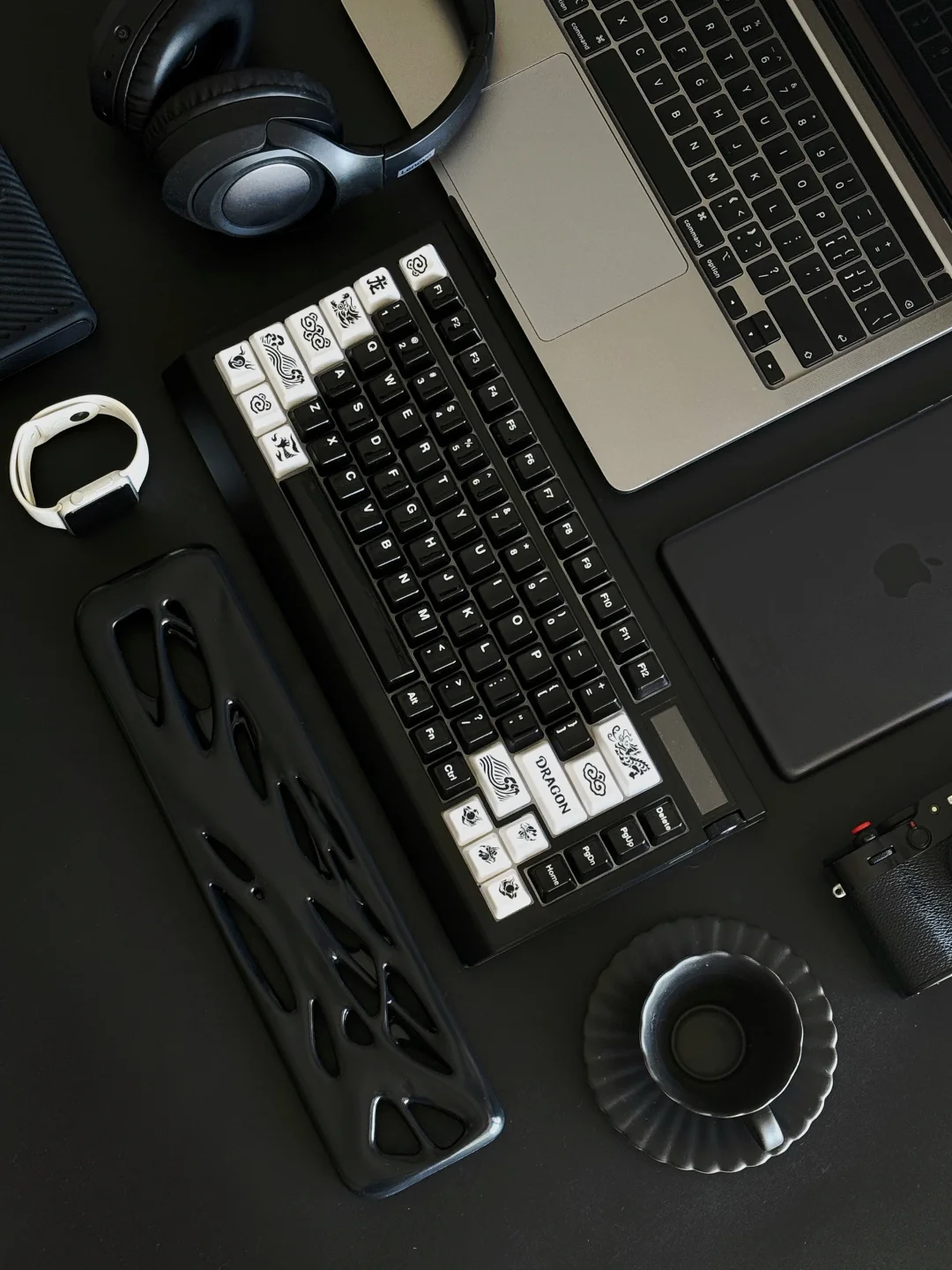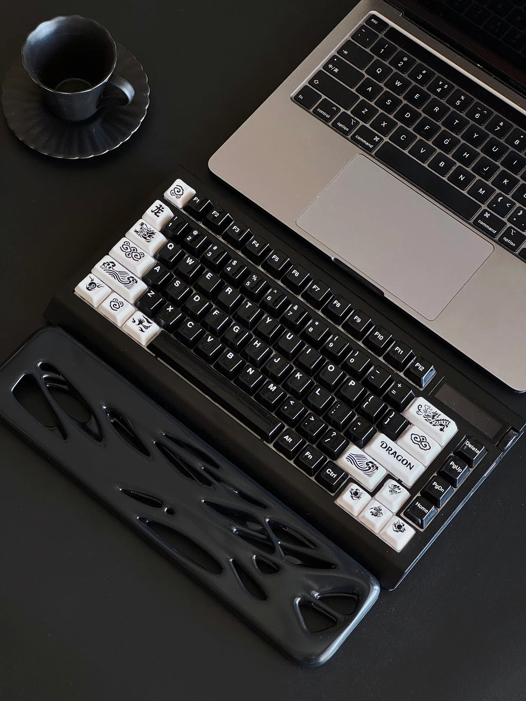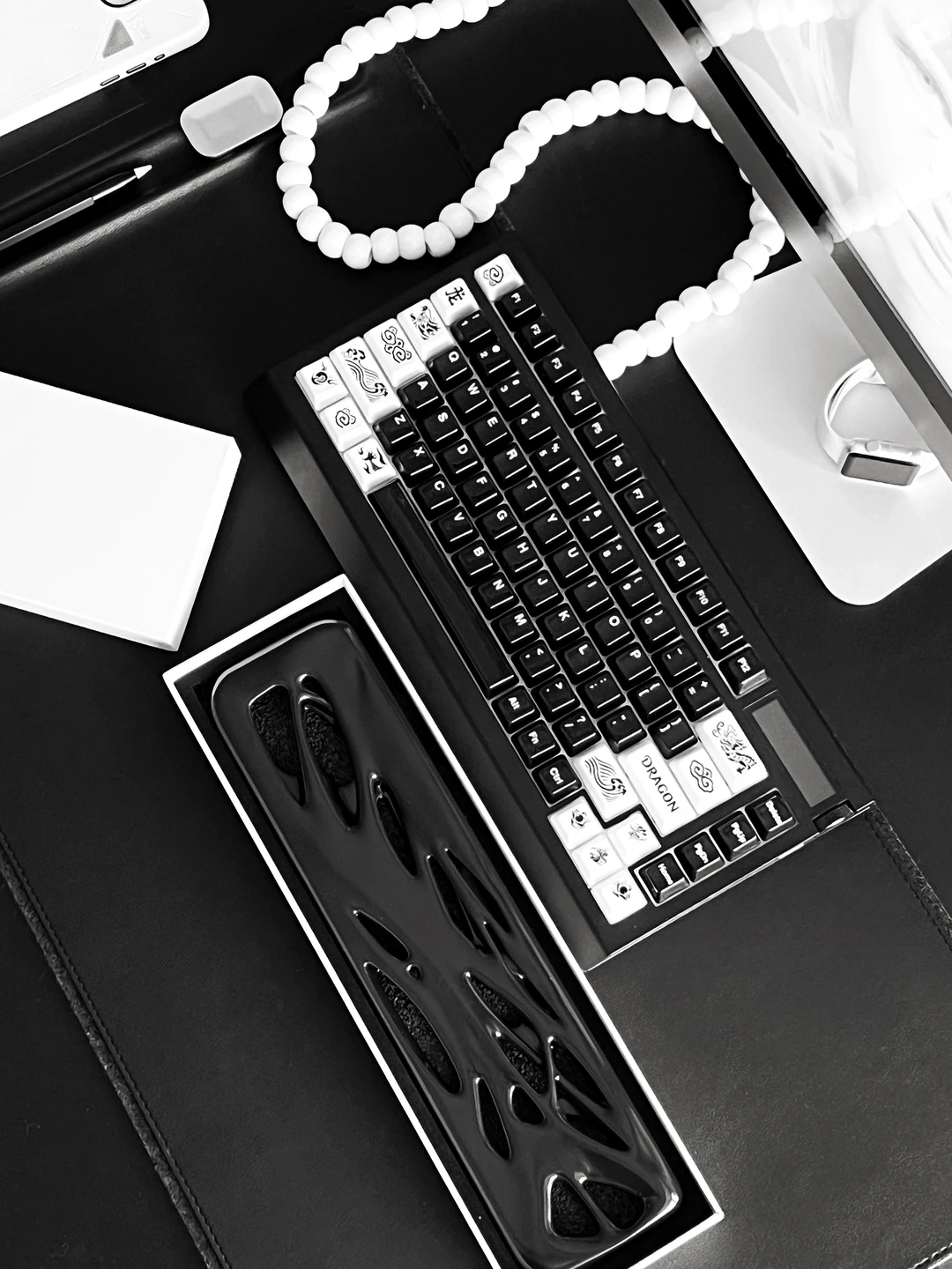 我发现黑白配桌搭真的百看不厌 陶瓷键帽+陶瓷手托,这也太有艺术感了吧。