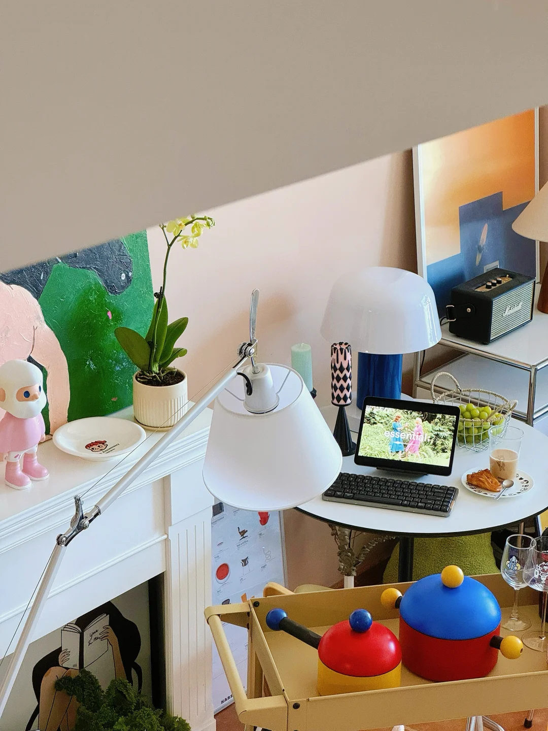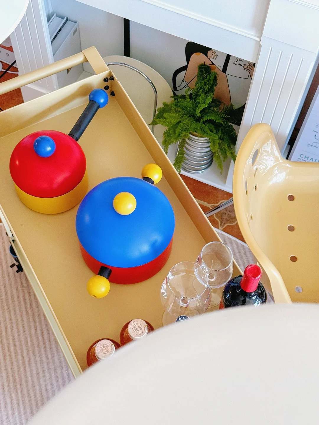 独居的快乐不就是 可以自由的装扮自己的小家 色彩 软装 搭配一切喜好跟着自己的感觉 喜欢充满色彩的小东西 不管是装饰摆件还是生活必需品 色彩总能让人对生活充满热情 等了好久的TVS泡泡锅终于到了 搁在客厅推车上即便不做饭 看着也欢喜 谁能拒绝红黄蓝孟菲斯配色呢😋 满满当当的客厅 装满自己对生活的态度