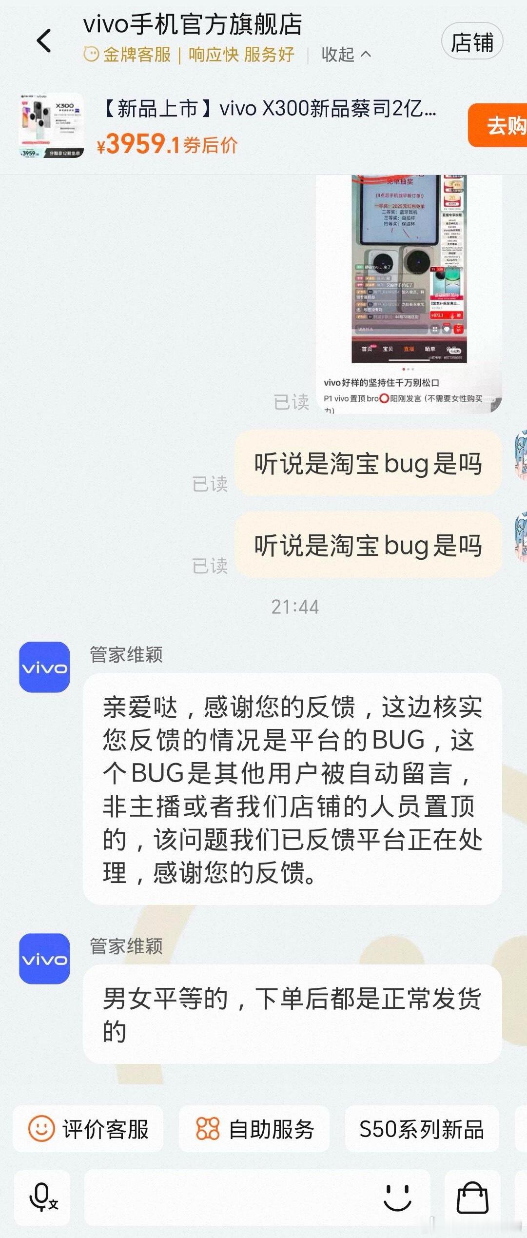 Vivo手机这个肯定是bug呀,主播和平台肯定不会置顶这样的留言。我身边很多女生